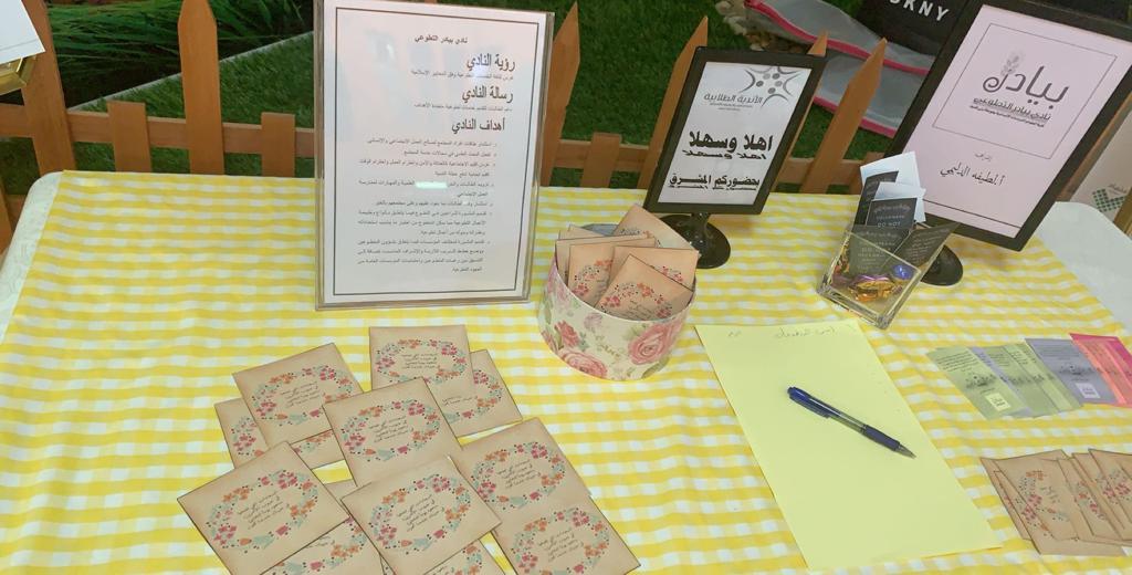 أقامت وحدة العمل الطلابي ممثلة بالأنشطة الثقافية والاجتماعية بكلية العلوم والدراسات الإنسانية بحوطة بني تميم أركان تعريفية لجميع أقسام الكلية والوحدات التابعة لها والأندية والمجالس الطلابية بالكلية، تحت قيادة عميدة الكلية الدكتورة/ حصة بنت سعود الهزاني. وبحضور وكيلة الكلية وأعضاء هيئة التدريس والإداريات والطالبات. وذلك في صباح يوم الأثنين الموافق: 144/6/16هـ. بتمام الساعة التاسعة والنصف في ساحة الكلية، حيت تضمنت الأركان رسالة ورؤية وأهداف كل قسم ووحدة ونادي والمجلس الطلابية الاستشارية ، وكما تضمنت الأركان تعريف الطالبات والمستجدات بالأنشطة التابعة لكل قسم. وكيفية تفعيلها داخل وخارج الكلية، وبينت أهمية هذه الأنشطة في صقل مواهب الطالبات، ولقد لاقت الأركان استحسان الجميع.