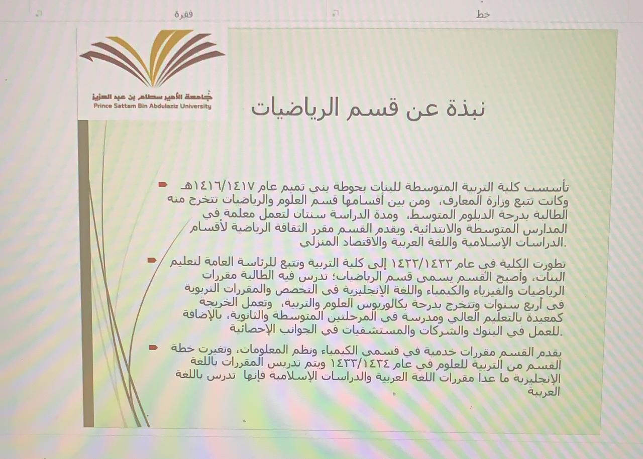 في بداية عام دراسي حافل, قدمت كلية العلوم والدراسات الإنسانية بحوطة بني تميم برامج منوعة لاستقبال وتهيئة الطالبات تحت رعاية عميدة الكلية د. حصة بنت سعود الهزاني , بغرض الترحيب بالطالبات المستجدات وتعرفيهن بالأقسام وبأنظمة الجامعة, وبحضور رئيسات الأقسام وأعضاء هيئة التدريس والطالبات المستجدات.افتتحت هذه البرامج بتقديم قسم اللغة الإنجليزية وذلك في يوم الأثنين الموافق: 19/ 1 / 1442هـ.في تمام الساعة 7:00 مساءً من خلال برنامج البلاك بورد Blackboard)). كما قدم قسم الدراسات الإسلامية يوم الثلاثاء، الموافق: 1442/1/20هـ على البلاك بورد, في تمام الساعة 11:30 صباحاً. توالت اللقاءات التعريفية تباعاً في بقية أقسام الكلية حيث أقام قسم نظم المعلومات يوم الخميس الموافق: 22/ 1/ 1442هـ في تمام الساعة 7:00مساءً عبر برنامجzoom ( عن بعد) بعد ذلك أقام قسم الرياضيات يوم الاثنين الموافق: 1442/1/26هـ. وذلك في تمام الساعة 7:00مساءً عبر برنامج بلاك بورد, تلاه قسم اللغة العربية يوم الثلاثاء الموافق: 27/ 1/ 1442هـ في تمام الساعة 10:00صباحاً عبر البلاك بورد. واختتمت هذه البرنامج ( تهيئة الطالبات المستجدات) بقسم الكيمياء وذلك في يوم الأحد الموافق: 1442/2/3هـ. عن طريق برنامج zoom في تمام الساعة 8:00مساءً. ركزت هذه اللقاءات على الترحيب بالطالبات المستجدات و تقديم نبذة سريعة عن نشأة الكلية و رؤية ورسالة الأقسام المختلفة ومجالات العمل فيها للخريجات. وخطة الدراسة لكل قسم، وأهمية الجودة ومشاركة الطالبة في تقییم العملية التعليمية. والتعريف بأهمية التعليم الإلكتروني لمواكبة العصر المعلوماتي، وتوفير أنظمة متنوعة للتعليم الإلكتروني ومنها البلاك بورد, كما تم توضيح دور الارشاد الاكاديمي وكیفیة الاستعانة بالمرشد الأكاديمي وعن أهم القضايا الأكاديمية التي تهم الطالبات وتناولت حقوق الطالبة وواجباتها وكل ما يخص الحياة الطلابية, كما تم توضيح متطلبات الالتحاق بالتدريب الميداني ومجالاته. تخلل هذه اللقاءات كلمات توجيهية لرئيسات الاقسام عن ضرورة التزام الطالبات بالحضور وبكل المهام التي تقدم لهن والتقيد بأنظمة الكلية وعكس صورة ايجابية عن ذواتهن، وتشجيهن على المشاركة في الانشطة الطلابية. من جهة أخرى تم تقديم تعريف مفصل عن دور النشاط الطلابي في صقل مواهب الطالبات وابراز المهارات والافكار البناءة و أنه جزء لايتجزأ من النشاط الأكاديمي. كما تم مناقشة أهداف المجلس الطلابي ومهامه، والعمل على نشر مفهوم المجلس بين الطالبات وتشجيع الطالبات على الانضمام لعضوية المجالس الطلابية.