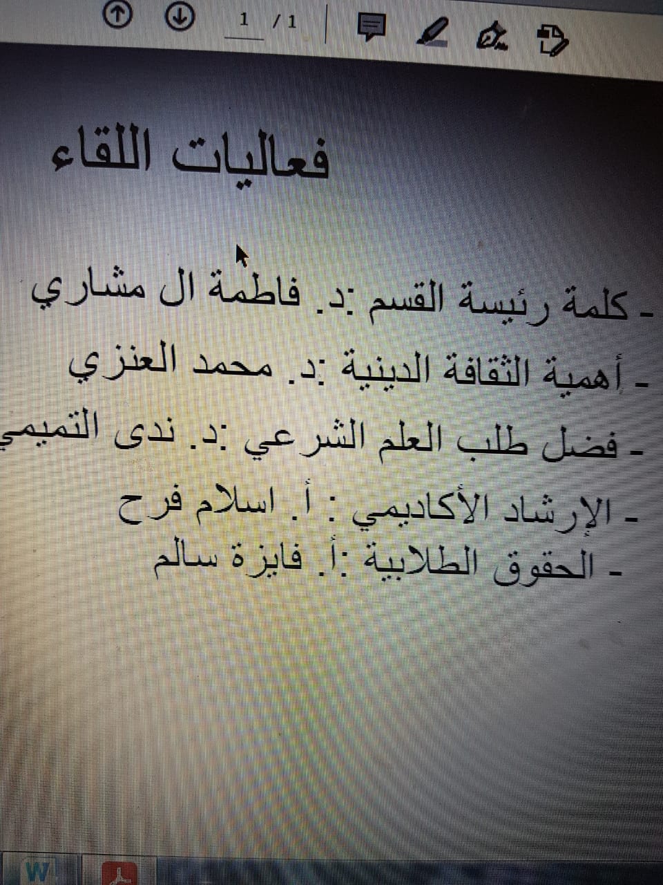 اختتمت هذه اللقاءات بشكر الجميع على الحضور والمشاركة بحوار مفتوح لاستقبال الأسئلة من الطالبات ولقاءات تعارف للمستجدات بأعضاء هيئة التدريس بالأقسام وتوزيع الادلة الإرشادية الخاصة بكل قسم ودليل الارشاد الأكاديمي.