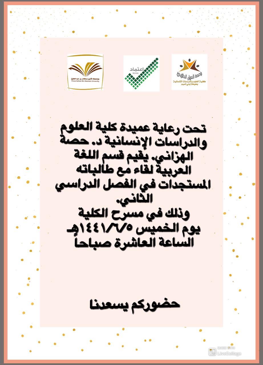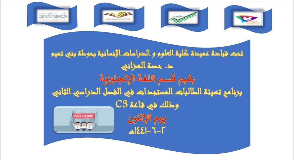 مع بداية فصل دراسي جديد، وبغرض الترحيب بالطالبات المستجدات وتعرفيهن بالأقسام وبأنظمة الجامعة، قدمت كلية العلوم والدراسات الإنسانية بحوطة بني تميم برامج منوعة لاستقبال الطالبات وتهيئتهن تحت رعاية عميدة الكلية د. حصة بنت سعود الهزاني، وبحضور رئيسات الأقسام وأعضاء هيئة التدريس والطالبات المستجدات، افتتحت هذه البرامج بتقديم قسم اللغة الإنجليزية برنامج بعنوان ( تهيئة الطالبات المستجدات في قسم اللغة الإنجليزية للفصل الدراسي الثاني) وذلك في يوم الأثنين الموافق ٢-٦-١٤٤١ هـ. في مبنى اللغة الإنجليزية قاعة C3. حيث بدأت البرنامج الأستاذة/ شروق الحميضي ( منسقة النشاط الطلابي في القسم) بذكر رؤية و رسالة جامعة الأمير سطام وكذلك رؤية و رسالة قسم اللغة الإنجليزية، و الأهداف التي يسعى لتحقيقها مع طالباته و مخرجاته. كما أشارت إلى أهمية قسم اللغة الإنجليزية و ما هي مجالات العمل الممكنة للطالبات بعد التخرج. ووجهت الطالبات إلى كيفية الوصول للخطة الدراسية على موقع الجامعة. بعد ذلك أوضحت أهمية النشاط الطلابي في القسم و أنه يدعم مواهب و قدرات الطالبات في مختلف المجالات و حفزت الطالبات بالمشاركة. بعد ذلك وضحت منسقة الإرشاد الأكاديمي د/ زينب واجي أنه يجب على كل طالبة معرفه أسم المرشدة الأكاديمية التابعة لها بحيث تكون هي الموجهة و الداعمة و المساعدة لها خلال مسيرتها التعليمية فالجامعة. كما أعطت الطالبات نسخه ورقيه عن رؤية ورسالة الجامعة و الخطة الدراسية المعتمدة فالقسم. بعد ذلك شاركت أ/ آيات الموسى منسقة الجودة فالقسم عن أهمية تقييم الطالب للمقررات في نهاية الفصل الدراسي لما له من أثر فعال في تحسين جودة المقررات الدراسية و تحسين جودة تدريس الأعضاء. ومن ثم ألقت رئيسة القسم د/ أبتسام نفخة بكلمة ترحيبية و تحفيزية للطالبات المستجدات و وجهت لهن بعض النصائح التي ستكون عون في مسيرتهن التعليمية، كما أوضحت لهن طبيعة المباني في الجامعة و مسمياتها و مسميات القاعات و كيف يمكن لهن حضور محاضرات الشبكات. بعد ذلك شاركت أ/ عناق صباح بكلمة أوضحت فيها فائدة الإنظام في نادي اللغة الإنجليزية و انه مجال تستطيع الطالبة من خلاله تطوير لغتها الإنجليزية و تحفيزها خارج نطاق المقررات الدراسية واختتم البرنامج بمناقشة بعض الامور الأكاديمية الهامة على الطلبات و تم الإجابة على معظم التساؤلات حتى يتهيؤوا لهذه المرحلة الدراسية إن شاء الله.