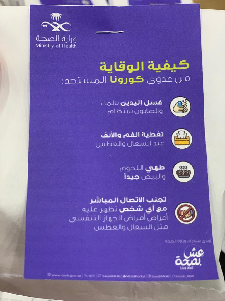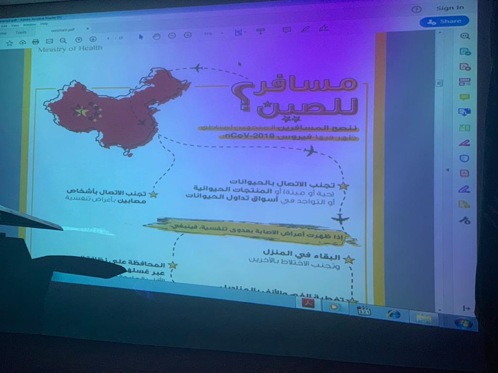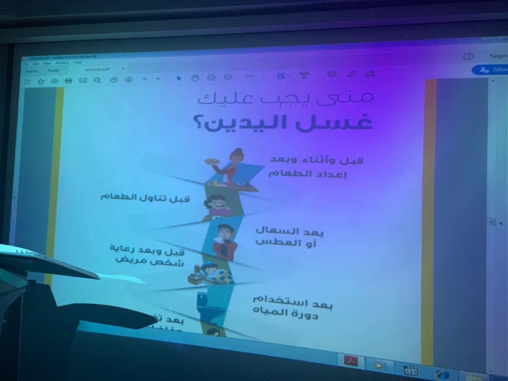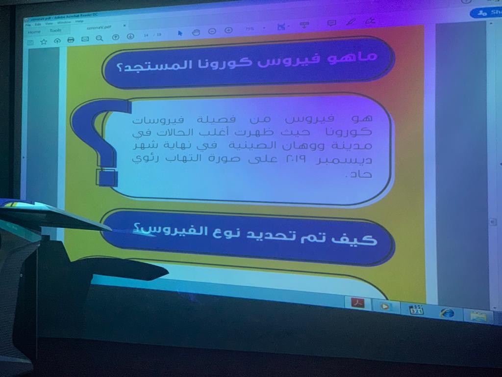 تحرص كلية العلوم والدراسات الإنسانية بحوطة بني تميم تحت قيادة عميدة الكلية د. حصة بن سعود الهزاني .إلى توعية الطالبات ومنسوبات الكلية بخطورة فيروس كورونا، والتأكيد على تنفيذ الإجراءات الواردة من وزارة الصحة في التعامل مع الأمراض المعدية، ومن هذا المنطلق قدم قسم الرياضيات برنامج بعنوان: ( فيروس كورونا ) تحت إشراف أ. منيرة المبارك. وكان ذلك يوم الخميس الموافق: ١٤٤١/٦/١٩ هـ. وتدور محاور البرنامج حول فيروس كورونا المستجد. حيث تم التعريف بالفيروس وكيفية الوقاية من العدوى، وعرض الطريقة الصحيحة لتعقيم اليدين. وأيضاً تم عرض احصائيات بعدد الاصابات والوفيات حول العالم، وتمت الإجابة على أكثر الاسئلة الشائعة حول الموضوع. وفي الختام تم توزيع منشورات حول الطريقة الأصح لغسل اليدين ومتى يجب غسل اليدين، بالإضافة لبعض المنشورات التوعوية متمنين من ﷲ العيش في مجتمع صحي وسليم.