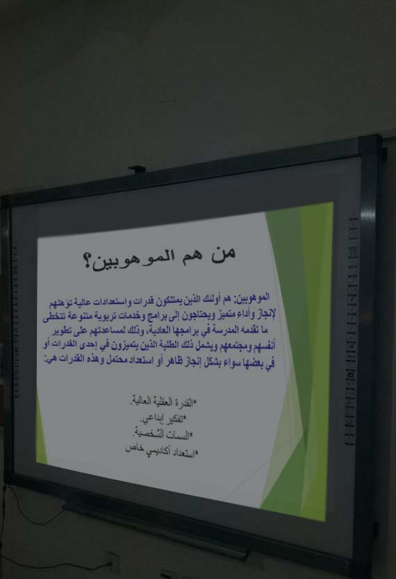 تزامناً مع الأسبوع الوطني للموهبة والإبداع أقامت وحدة الموهوبات بكلية العلوم والدراسات الإنسانية بحوطة بني تميم بالتعاون مع مدرسة متوسطة وثانوية الحلوة برنامج بعنوان "كيف أكتشف موهبتي" تحت قيادة عميدة الكلية د. حصة بن سعود الهزاني من تقديم الطالبتين: هند محمد التميمي و تسنيم سعود التميمي. وكان ذلك يوم الثلاثاء: ١٤٤١/٧/٨هـ. بتمام الساعة 9:30 صباحاً، بمدرسة متوسطة وثانوية الحلوة بمحافظة حوطة بني تميم. وتدور محاور البرنامج حول الموهوبين وخصائصهم وطريقة استغلال الموهبة للفرد والمجتمع، وكيفية اكتشاف المواهب، و الحذر من بعض قاتلات الإبداع، وفي الختام تم توزيع بطاقات حول القواعد الصحيحة للعثور على الشغف واكتشاف الموهبة. متمنين من ﷲ جيلًا مبدعاً ومتميز.