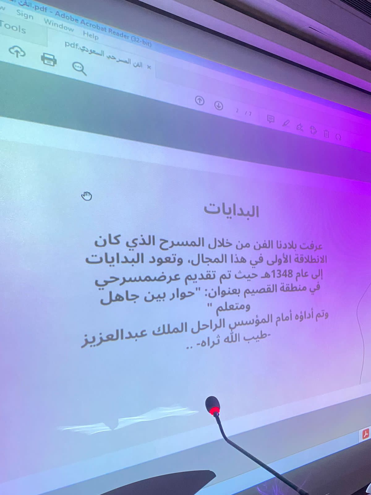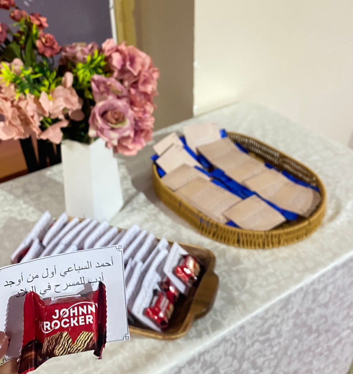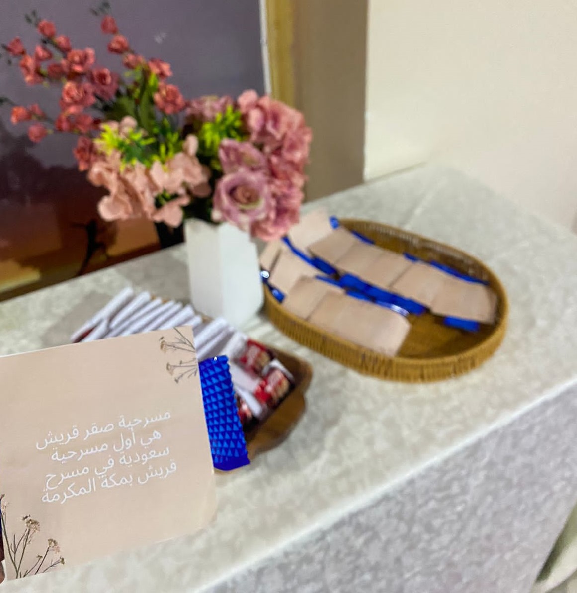 بدأ البرنامج بإلقاء ورقات نثرية عن بدايات المسرح السعودي وأهم رجالاته والمراكز التي تبنت نشأته وشبابه وصولاً لوصف حال مسرحنا اليوم وتطوره والجهات الداعمة له وقد رافق ذلك توزيع تقديمات حوت أبرز الأفكار عن المسرح الفني في حضور عدد من المنسوبات.