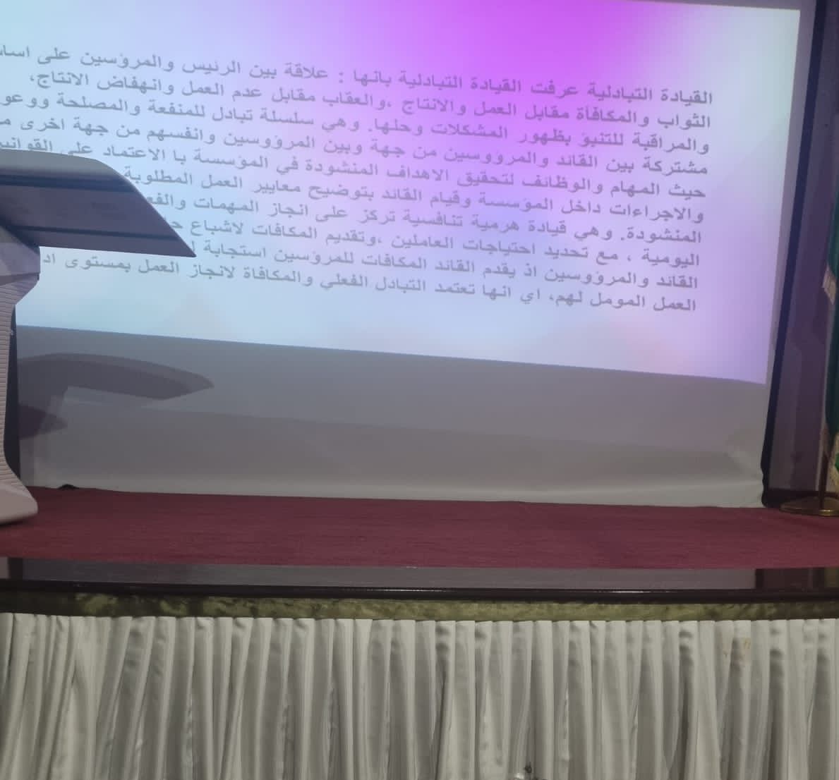 القيادة هي حلقة الوصل بين العاملين و بين خُطط المؤسسة و تصوراتها المستقبلية، وإن تحفيز العاملين في مختلف قطاعات الأعمال و استعمال مبدأ المكافأة و الثواب و العقاب هو أحد أساليب القيادة التبادلية؛ من هنا أقام قسم إدارة الأعمال بكلية العلوم و الدراسات الإنسانية بحوطة بني تميم في صباح يوم الأثنين ٩/ ٦/ ١٤٤٤ هـ برعاية عميدة كلية العلوم و الدراسات الإنسانية بحوطة بني تميم الدكتورة حصة الهزاني، و بإشراف وكيلة الكلية للشؤون التعليمية و الأكاديمية الدكتورة بيان السيف برنامجًا بعنوان القيادة التبادلية.