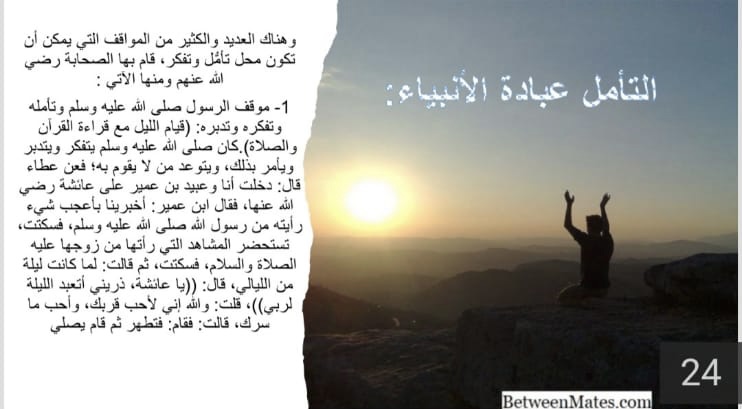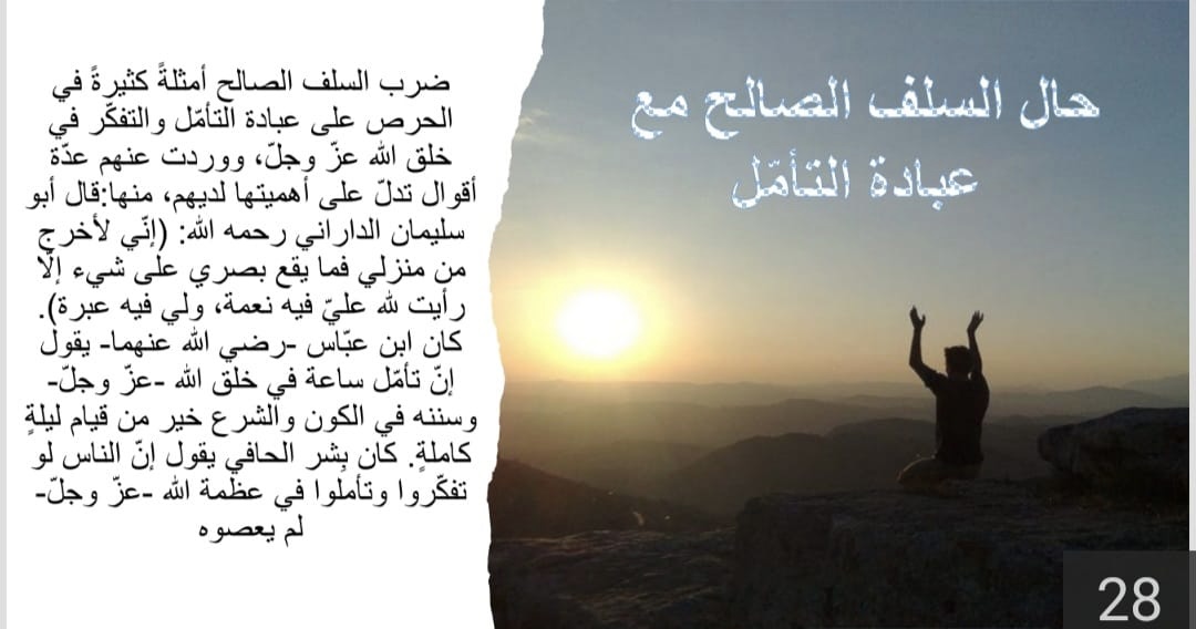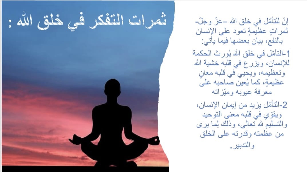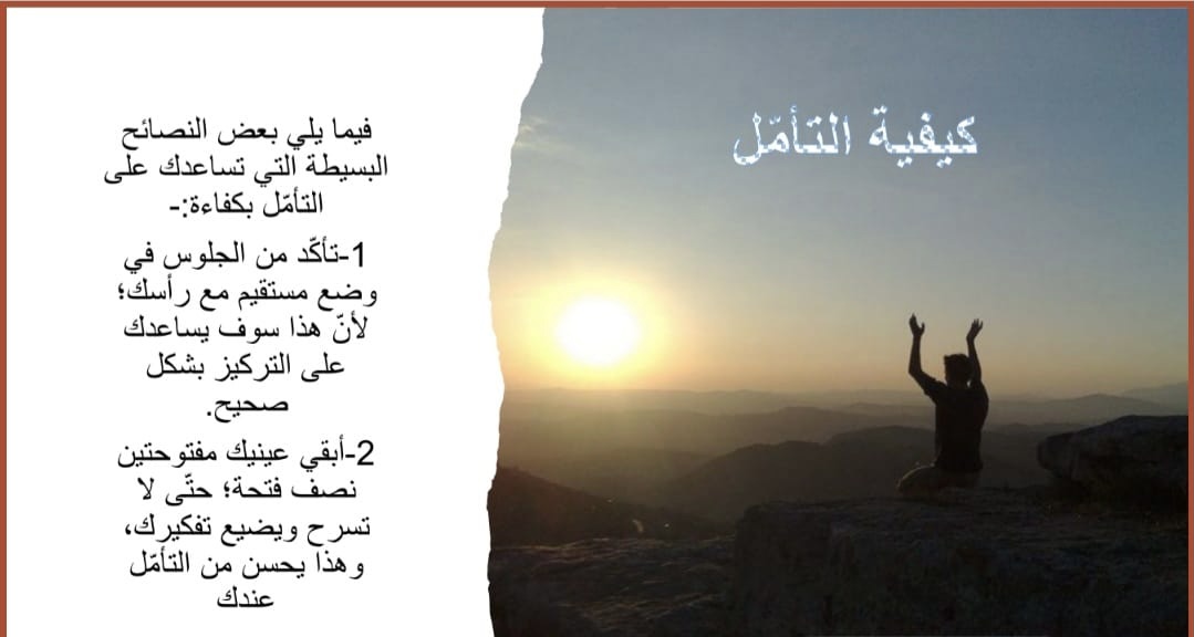 حيث ابتدأ البرنامج بافتتاحية بينت أهمية ممارسة التأمل، يليها ذكر فوائد التأمل ثم ثمرات التفكر في خلق الله، ثم بيان الفرق بين التأمل والتفكر والتدبر، بعد ذلك انتقل الحديث إلى ذكر آيات التأمل في القرآن الكريم، تلا ذلك بيان كون التأمل عبادة الأنبياء، بعد ذلك بيان لحال السلف الصالح مع عبادة التأمل، ثم انتقل الحديث لكيفية التأمل، ثم التنويه على الفرق بين التأمل واليوغا، واختتم البرنامج بشكر الله عز وجل ثم شكر فريق عمل هذا البرنامج من معدين ومقدمين ثم شكر الحضور على حسن استماعهم.