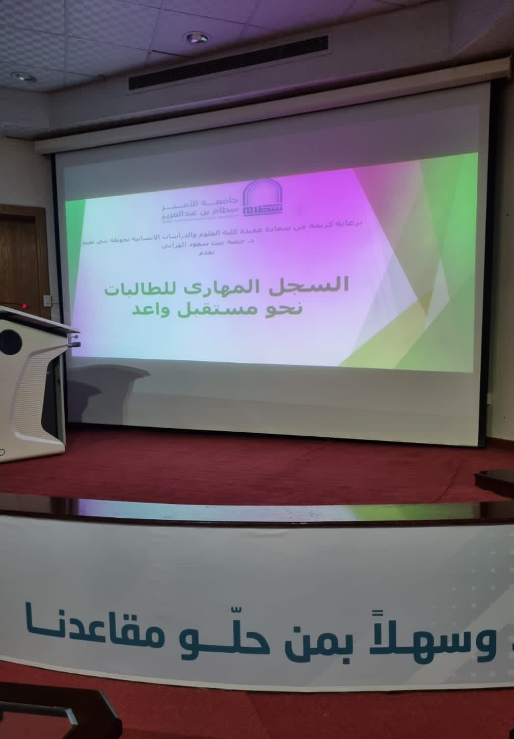 تحت رعاية عميدة كلية العلوم والدراسات الإنسانية بحوطة بني تميم سعادة الدكتورة/ حصة بنت سعود الهزاني؛ أقامت وحدة العمل الطلابي برنامجًا بعنوان" السجل المهاري" من تقديم الدكتورة/ مي مصطفى حسن أستاذ مساعد ومشرفة قسم الكيمياء، وذلك يوم الأربعاء الموافق 1445/2/21هـ بتمام الساعة 9:30بمسرح الكلية.
