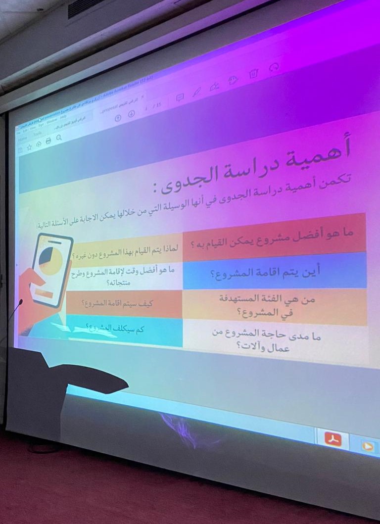 وقد هدف البرنامج إلى التعريف بدراسة الجدوى وبيان أهميتها، وأنواعها، والعلاقة بين دراسة الجدوى والتخطيط الاستراتيجي.