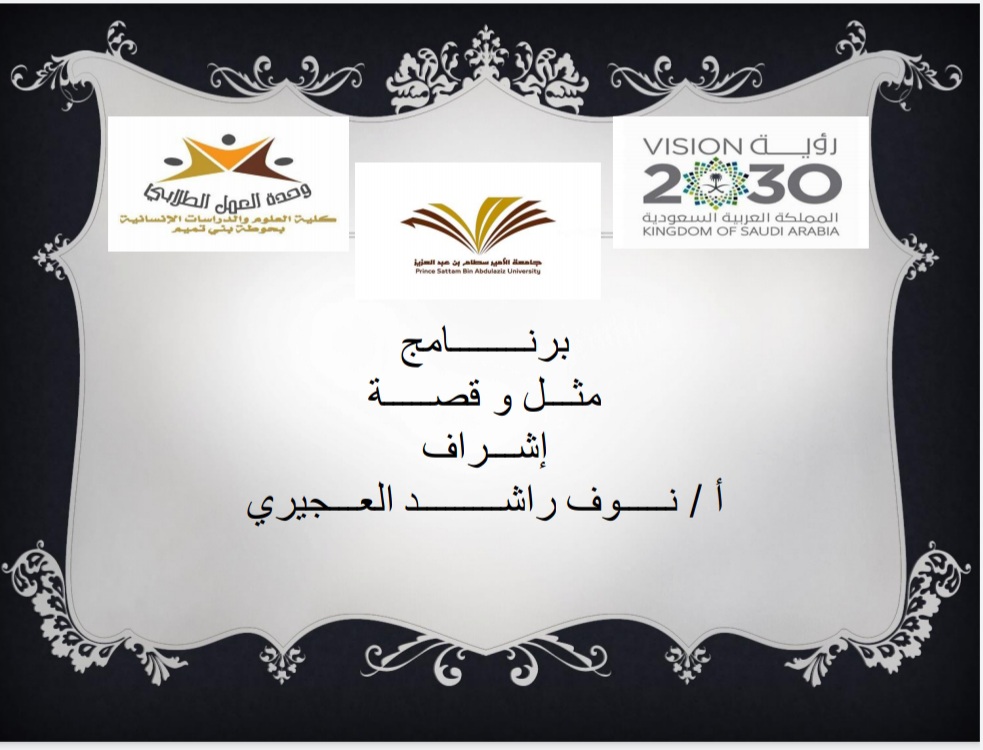 الأمثال الشعبية هي حكمة الأجداد الشفاهية، وموروث التاريخ الثقافي، وحفاظاً على هذا الموروث قدمت طالبات التربية الميدانية بكلية العلوم والدراسات الإنسانية بحوطة بني تميم تحت رعاية سعادة العميدة الدكتورة/ حصة بنت سعود الهزاني، برنامجًا بعنوان (مثل و ِقصة ) بحضور رئيسة قسم اللغة العربية الدكتورة/ أماني عبد الرزاق، ومشرفة النشاط في القسم الدكتورة/ نحا القحطاني، والأستاذة/ نوف بنت راشد العجيري، في يوم الأربعاء الموافق:1442/4/3هـ، في تمام الساعة الحادية عشر صباحًا. بحضور عددٍ من أعضاء هيئة التدريس والطالبات.