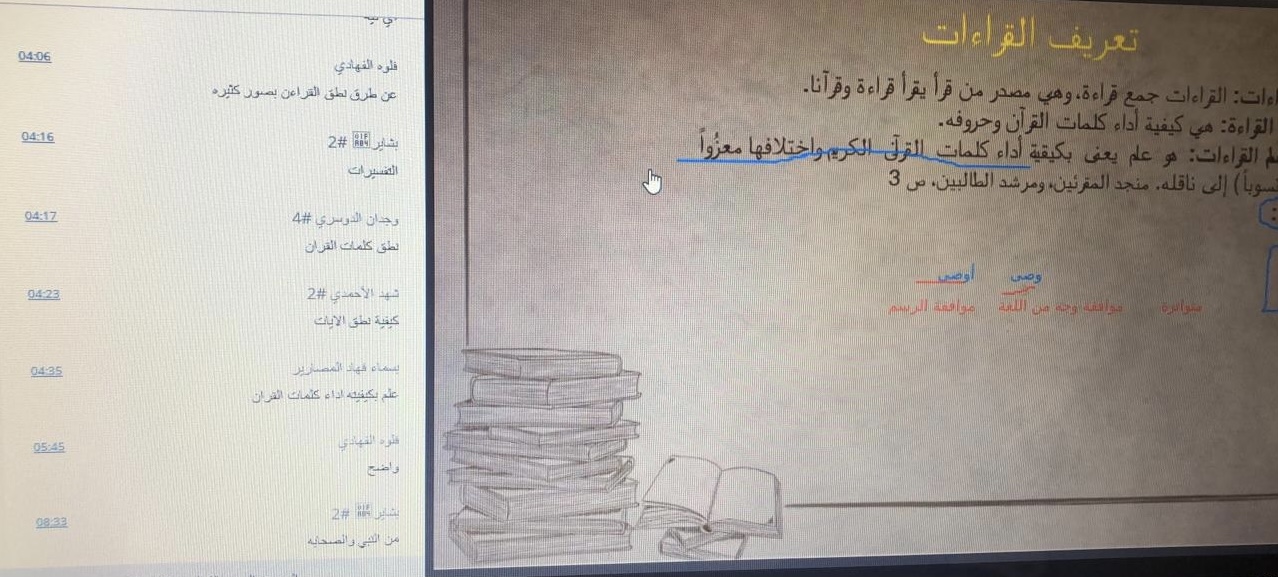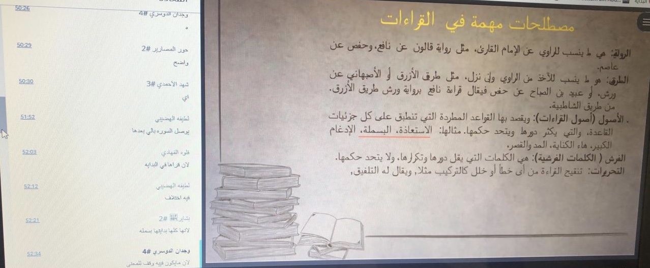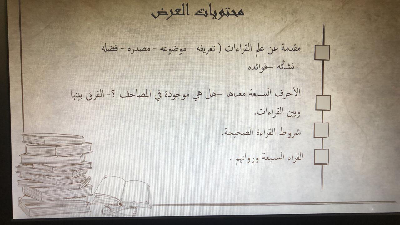 تناولت الدورة التعريف بمعنى القراءات وبيان بالقراء وماهية الاختلاف بينها، والأمثلة عليها، وقد حضر الدورة عدد من الطالبات والخريجات اللاتي عبرن عن سعادتهن بعد الانتهاء منها، ثم تولت الدكتورة نحا المشرفة على البرنامج إعداد الاختبار والشهادات على ضوء نتائج اختبار الاجتياز.