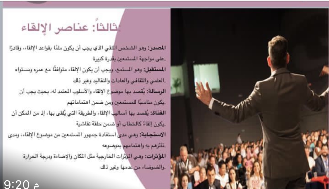 (رَبِّ اشْرَحْ لِي صَدْرِي وَيَسِّرْ لِي أَمْرِي وَاحْلُلْ عُقْدَةً مِّن لِّسَانِي يَفْقَهُوا قَوْلِي) [طه/25-28] الإلقاء فن لا يجيده سوى المبدعين ولا يرتقي به الا الممارسين.