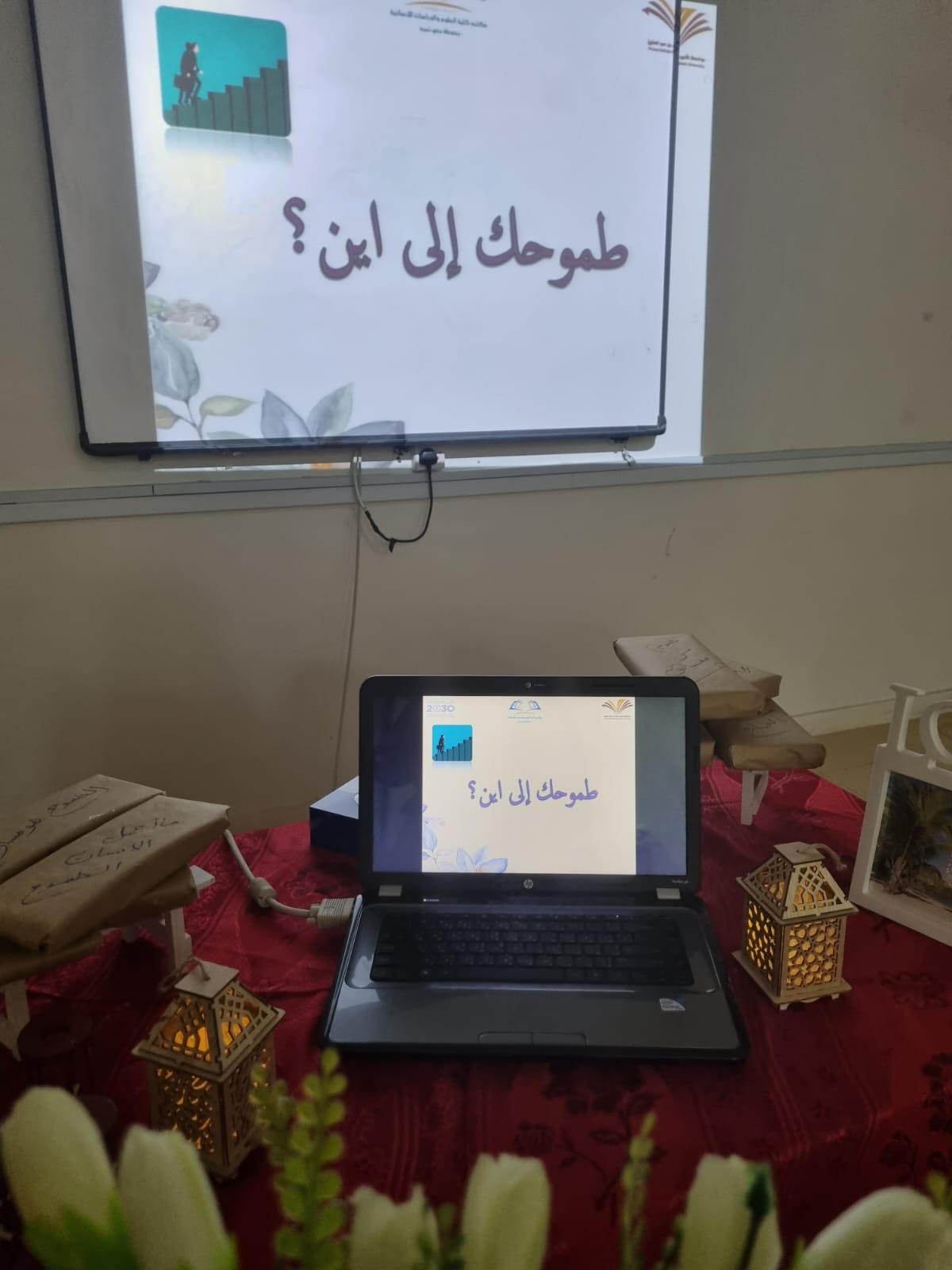 الطموح شيء جميل حينما يعلو الإنسان بطموحاته، أقامت المكتبة العامة بكلية العلوم والدراسات الإنسانية بحوطة بني تميم تحت رعاية عميدة كلية العلوم والدراسات الإنسانية بحوطة بني تميم. د. حصة بنت سعود الهزاني، دورة بعنوان (طموحك إلى أين؟) من تقديم المدربة أ. فوزية الجمعة. يوم الأحد الموافق: 1443/7/26هـ في قاعة التدريب من الساعة(10إلى12) صباحًا. وكان عدد الحضور (15) متدربة من أعضاء وإداريات وطالبات الكلية.