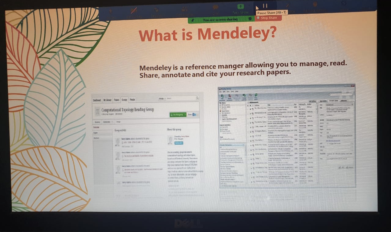 كما تم عرض كيفية الحصول على البرنامج وتحميله، وإنشاء مكتبة سحابية لمراجع البحث وتنظيمها، وإنشاء تزامن أي تحديثات للمراجع، وكيفية ربط التطبيق بالرسالة أو البحث وإضافة المراجع.