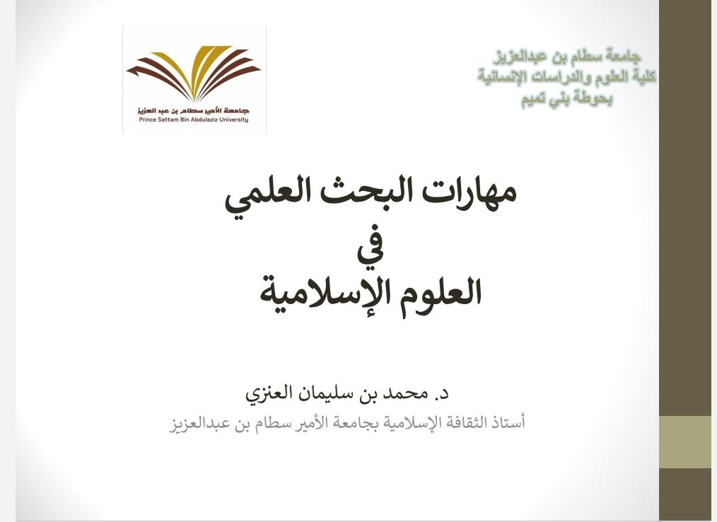 لقد حث الإسلام المسلمين على طلب العلم، والتفقه في الدين، والبحث الدقيق في كل مجالاته وفروعه. وبناءً على ذلك أقامت وحدة الخريجات متمثلة في لجنة تنمية المهارات المهنية بإشراف الدكتورة نحا القحطاني دورة تدريبية بعنوان( مهارات البحث العلمي في العلوم الإسلامية) تحت رعاية عميدة كلية العلوم والدراسات الإنسانية بحوطة بني تميم سعادة الدكتورة حصة بنت سعود الهزاني. وذلك في يوم الثلاثاء الموافق: ٩/ ٤/ ١٤٤٢هـ، الساعة السابعة مساءً، عبر برنامج البلاك بورد. قدمها الدكتور محمد العنزي بقسم الدراسات الإسلامية، حيث ابتدأ الدورة بتمهيد عن بعض المصطلحات العلمية، ثم الولوج في محاور الدورة من بيان لمناهج البحث العلمي، وأسس الاختيار فيما بينها المناسبة للبحث، وما يتطلبه البحث العلمي من أسس ليخرج على الوجه المطلوب، وانتهت الدورة بإلمام الحضور من الخريجات والطالبات بالخطوط الواضحة التي رسمها المدرب.