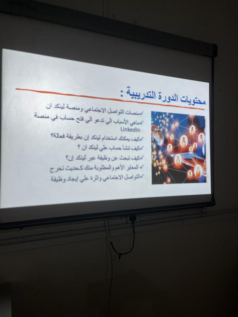ناقشت الدورة عدة محاور من أبرزها: التعريف بمنصة LinkedIn والأسباب المحفزة لاستخدامها وطريقة استخدامها بطريقة فعالة، كما وضحت بالتطبيق العملي طريقة فتح حساب واستخدامه بالطريقة الأمثل للبحث عن الوظيفة المناسبة.