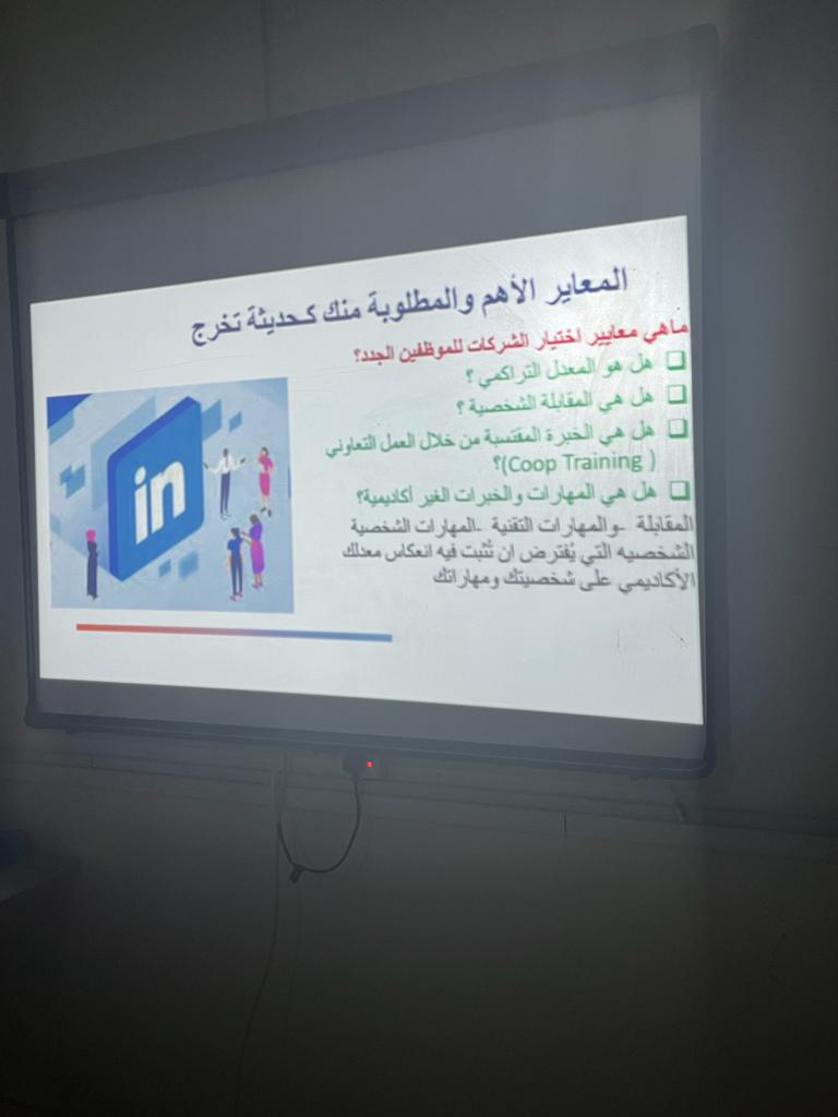 تماشياً مع رسالة الجامعة في دعم الخريجين حتى يكونوا متميزين في جميع المجالات، قدمت وحدة الخريجات ممثلة بلجنة التأهيل الوظيفي في كلية العلوم والدراسات الإنسانية بحوطة بني تميم بالتعاون مع وحدة التوجيه والإرشاد (المجال الاجتماعي) دورة تدريبية بعنوان: (تأثير منصة لينكد إن اجتماعيا في إيجاد فرص وظيفية).