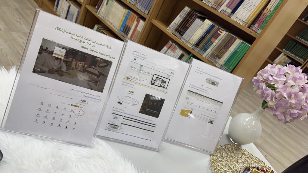 وقد تم الشرح للحاضرات عن كيفية الدخول للمكتبة الرقمية السعودية والبحث فيها.