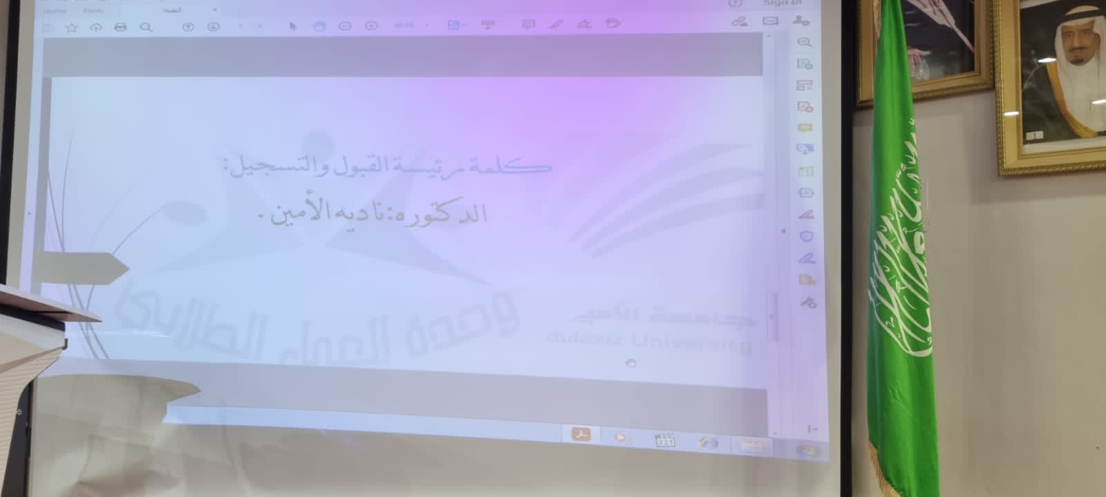 كما قدمت مشرفة النشاط كلمتها التي بدأتها بالترحيب والشكر بالحضور وذكر الجهود الموحدة للرقي بالنشاط والمسارعة في العمل والاجتهاد للنهوض بالكلية والجامعة والوطن، كما نوهت الدكتورة مي مصطفى على تفعيل السجل المهاري للطالبات والوعي الذي لابد أن تركز عليه الطالبة للحصول عليه، واختتمت الفعالية بمقطع فيديو عن الهمة والطموح.