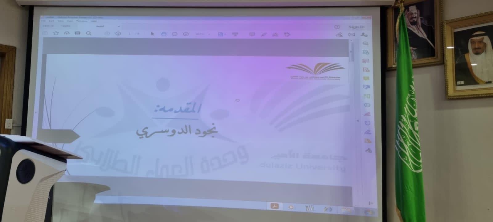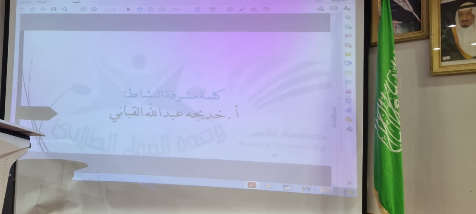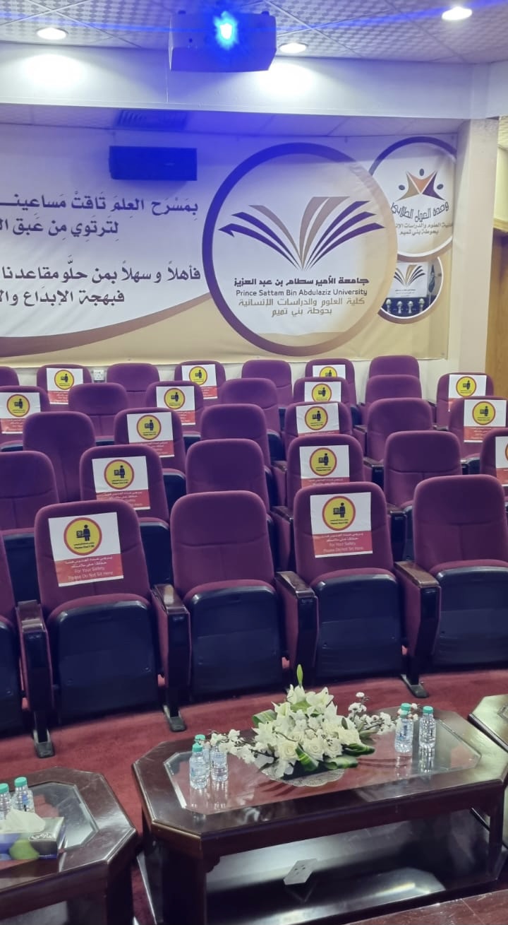 عام مضى وعام أقبل لنعود بحذر وأمل نظمت وحدة العمل الطلابي بإشراف مشرفة النشاط ا. خديجه القباني فعالية افتتاحية الأنشطة الطلابية بعنوان:" وهج عام" بمسرح الكلية تحت رعاية عميدة كلية العلوم والدراسات الإنسانية بحوطة بني تميم د. حصه بنت سعود الهزاني وبحضور الوكيلة ومنسوبات وطالبات الكلية، وذلك في يوم الأربعاء الموافق: ١٤٤٣/٢/١ هـ، في تمام الساعة العاشرة صباحاً.
