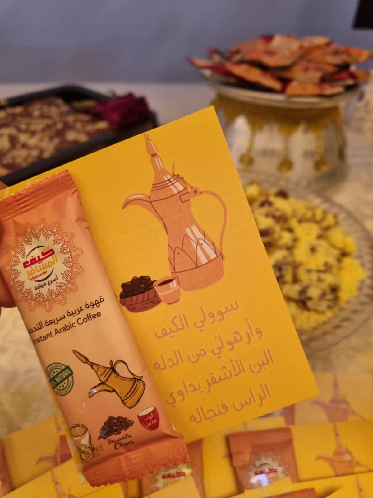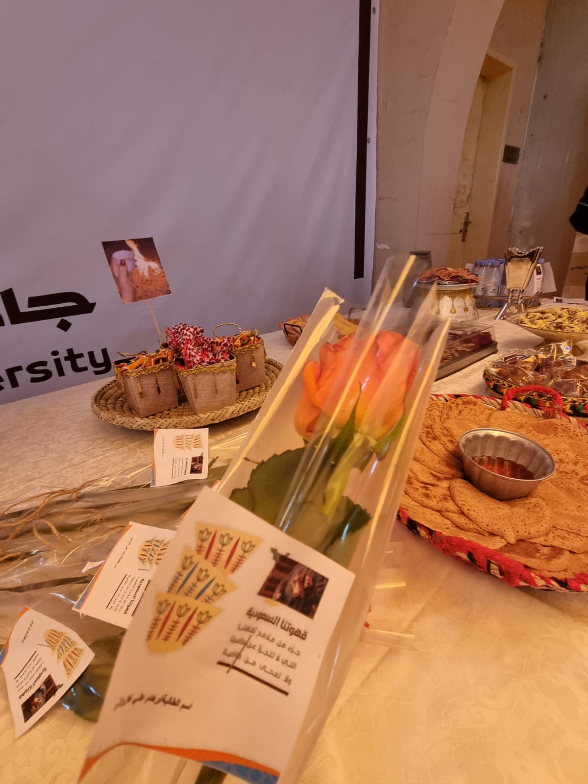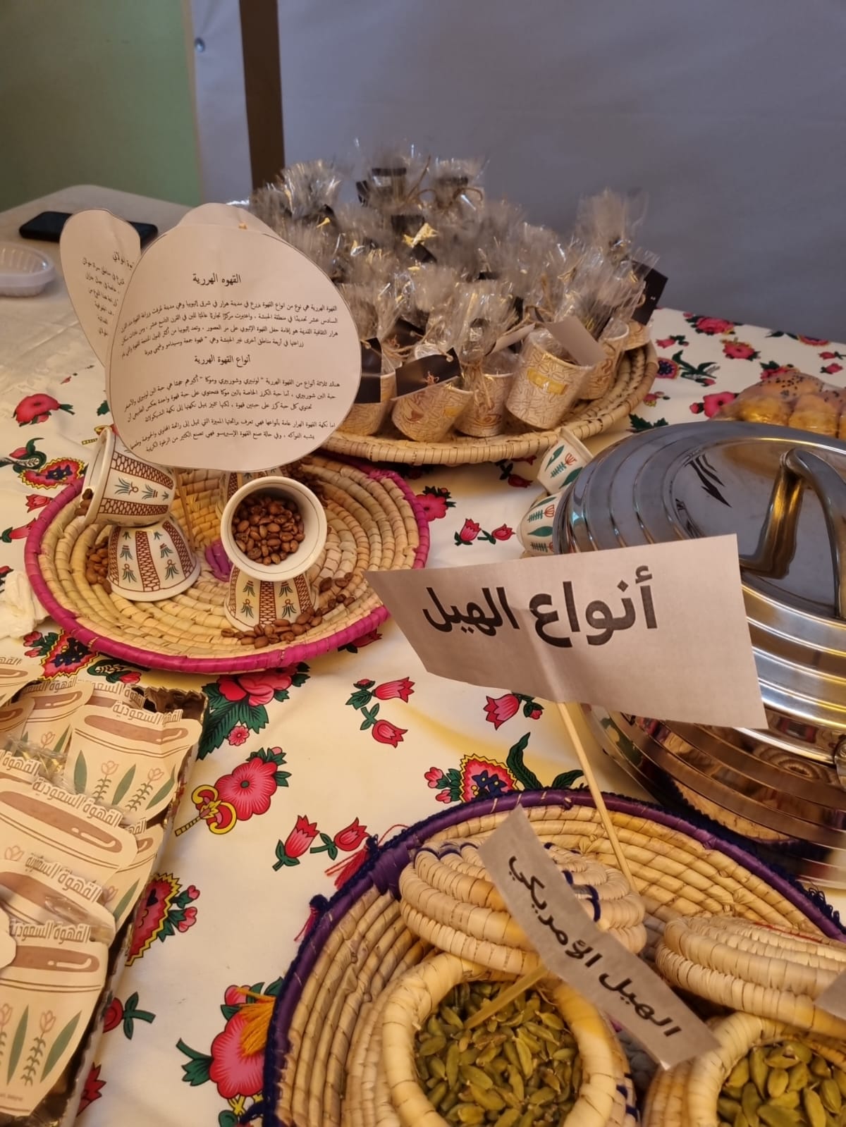 أيضًا اشتملت على ركن للضيافة ونشرات وتوزيعات تحتوي على رسائل تثقيفية لحث الطالبات ومنسوبات الكلية بالاعتزاز بقيمة القهوة السعودية باعتبارها عنصراً مهماً من عناصر ثقافتنا الغنية.