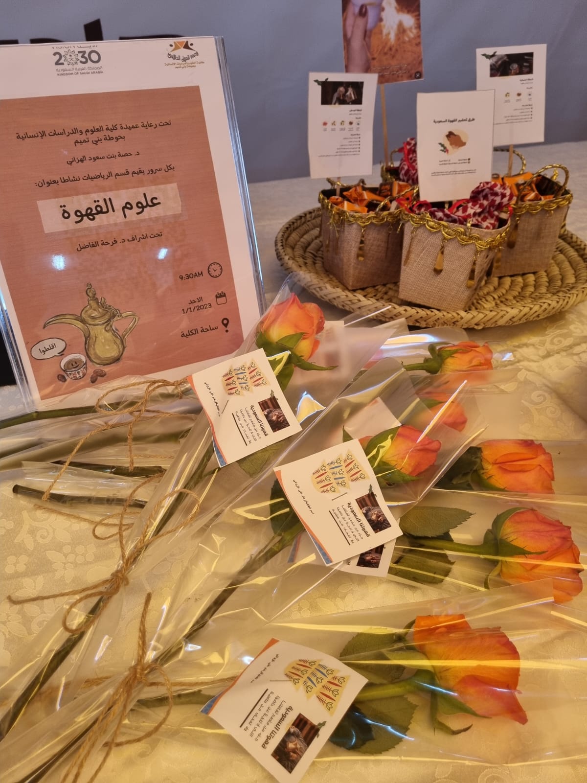 تعزيز لمكانة القهوة السعودية محلياً ودولياً باعتبارها رمزاً من رموز الثقافة السعودية ومن منطلق المكانة العالية لهذا الرمز الثقافي والوطني، جاءت تسمية عام 2022م بعام القهوة السعودية وبهذه المناسبة، أقامت طالبات قسم الرياضيات تحت رعاية عميدة كلية العلوم والدراسات الإنسانية د. حصة بنت سعود الهزاني فعالية بمناسبة أسبوع القهوة السعودية تحت شعار "علوم القهوة" بإشراف د. فرحة الفاضل و أ. تهاني جويعد. يوم الأحد الموافق :1444/6/8هـ في ساحة الكلية.