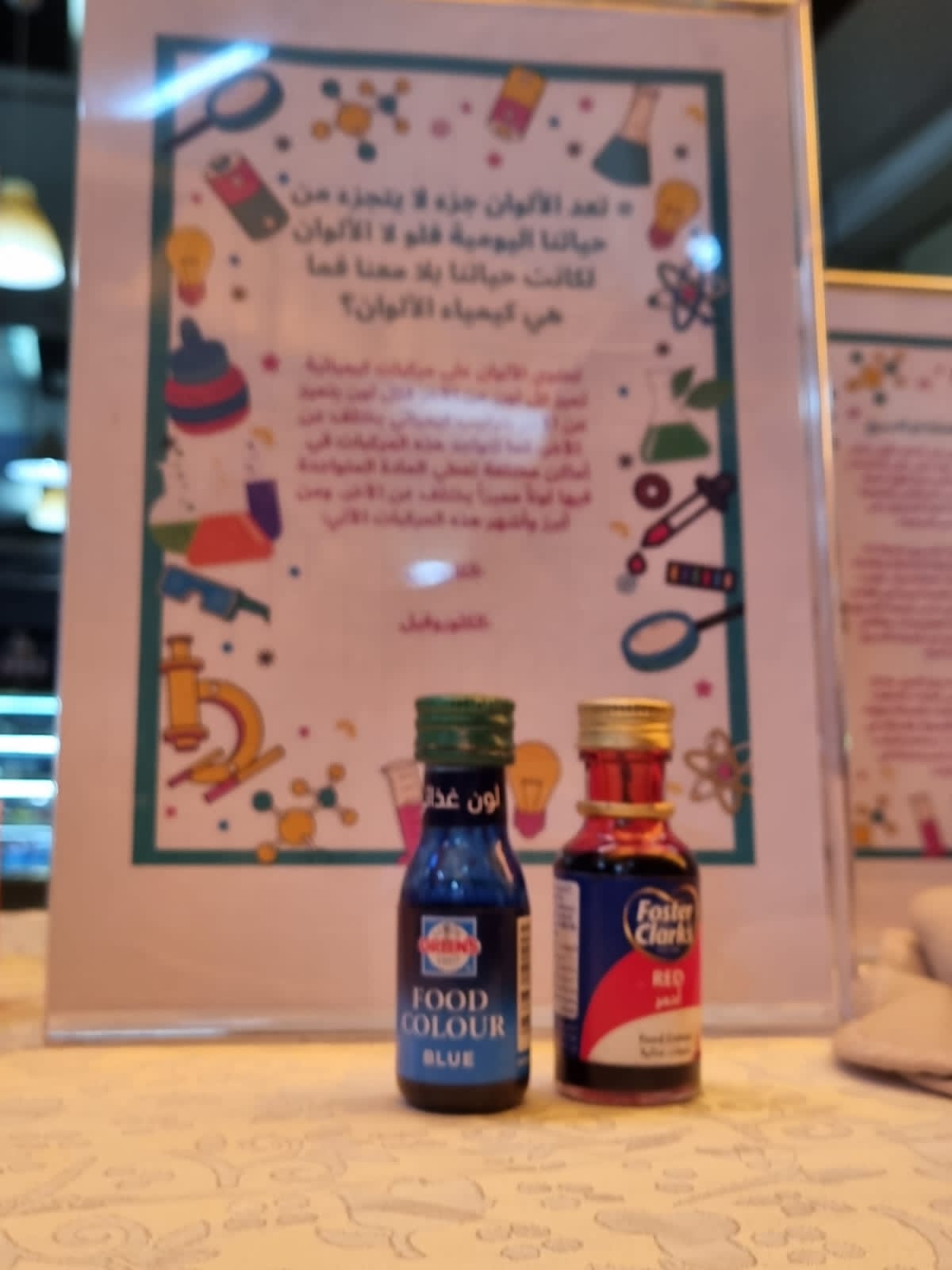 اشتملت هذه الفعالية على أركان متنوعة تضم العديد من الفعاليات والأنشطة والتجارب الكيميائية بأفكار مختلفة توضح أهمية الكيمياء في حياتنا بإشراف مشرفة قسم الكيمياء د. مي مصطفى ومشاركتي في التنظيم بصفتي مشرفة نشاط القسم وأيضًا بمشاركة عضوات هيئة التدريس وطالبات القسم، وكانت الأركان كالتالي: