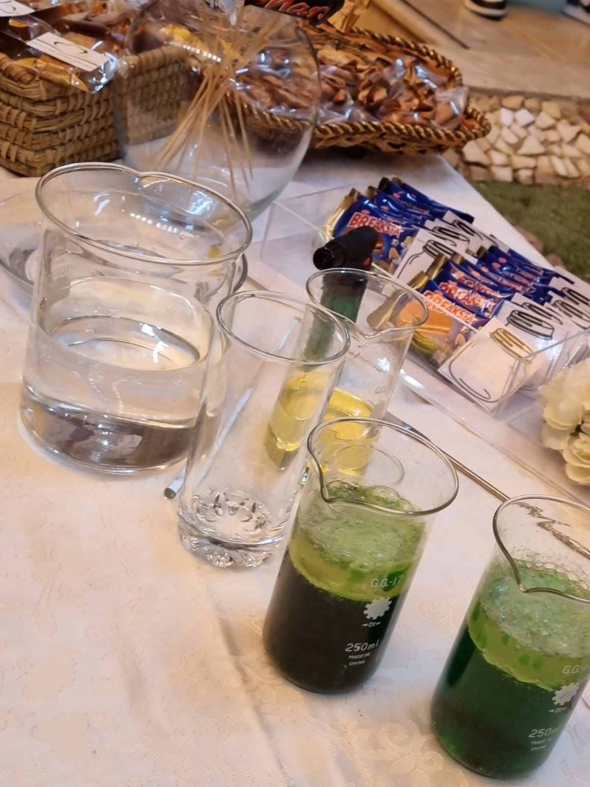 واختتمت الجولة على الأركان بركن الضيافة بإشراف أ. منيرة التميمي وطالبات المجلس الاستشاري الطلابي للقسم حيث اشتمل على بعض المشروبات والحلويات التي تم عرضها بطريقة مميزة تمثل قسم الكيمياء.