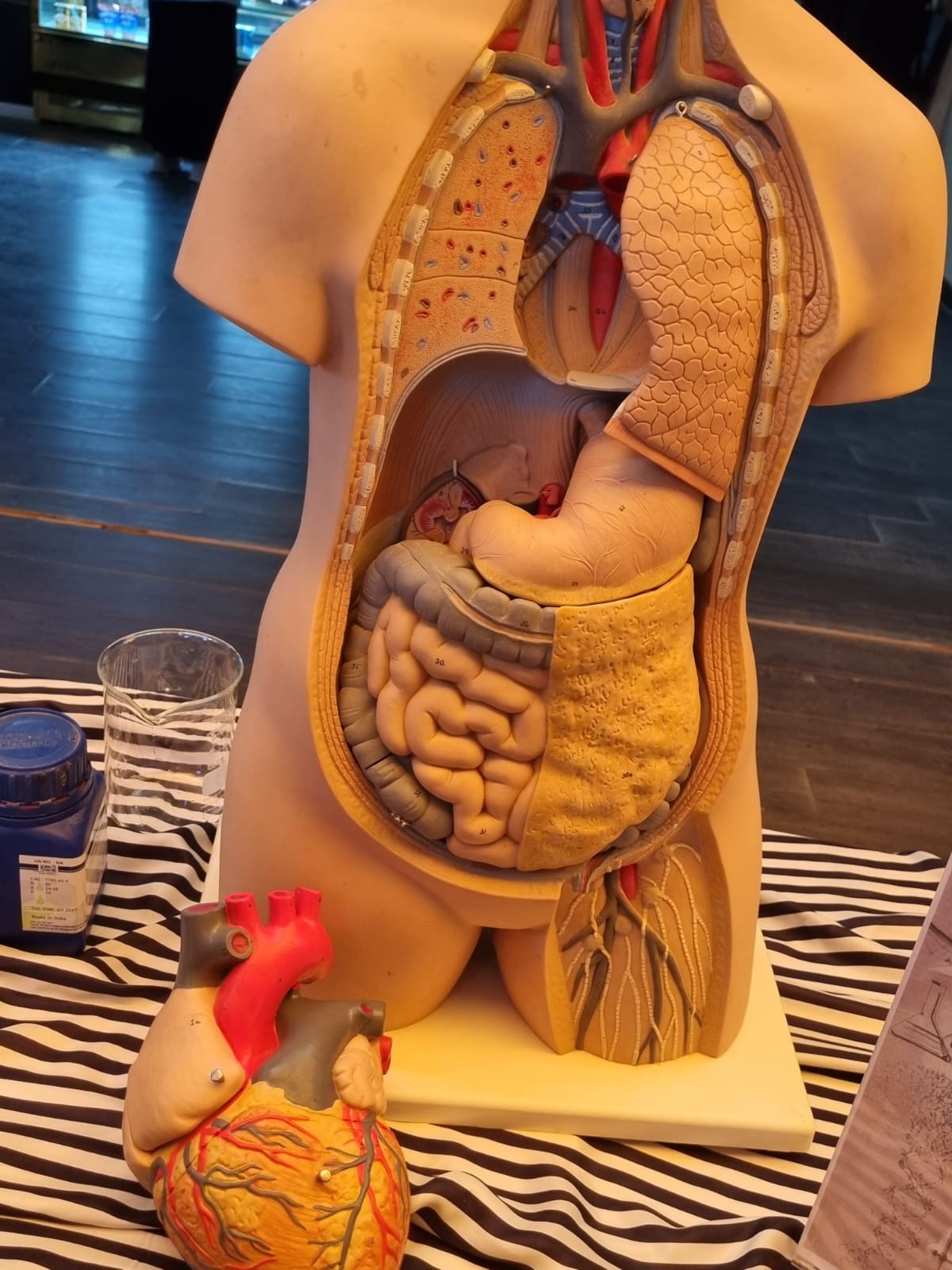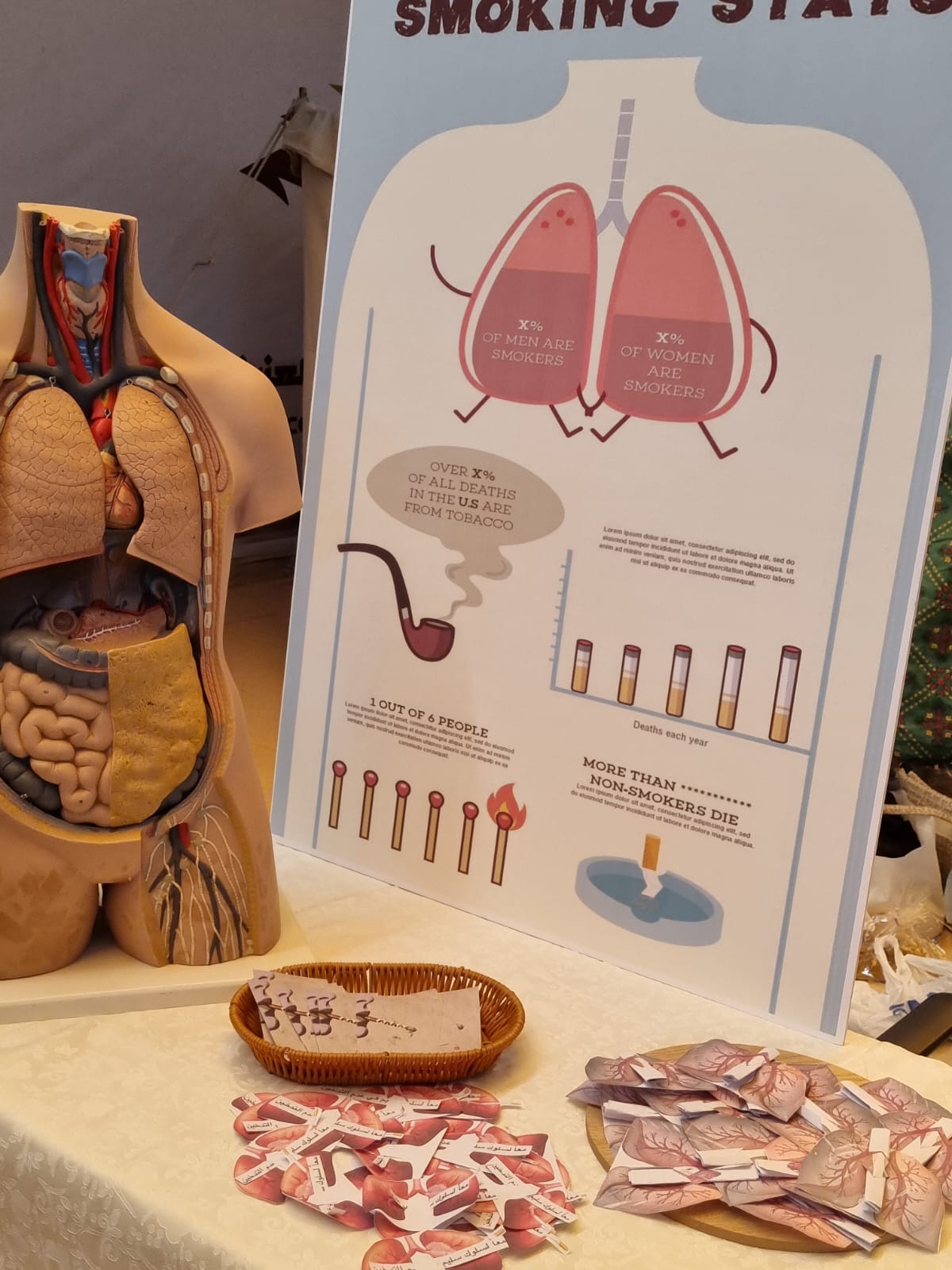 رابعًا: ركن الأحياء بإشراف د. رانيا سليمان، تم عرض نماذج ومجسمات توضيحية لعلم التشريح وخصائص الخلايا والأنسجة، وعلم وظائف الأعضاء كما اشتمل على مطويات لتوضيح مخاطر التدخين وتأثيره على صحة الإنسان.
