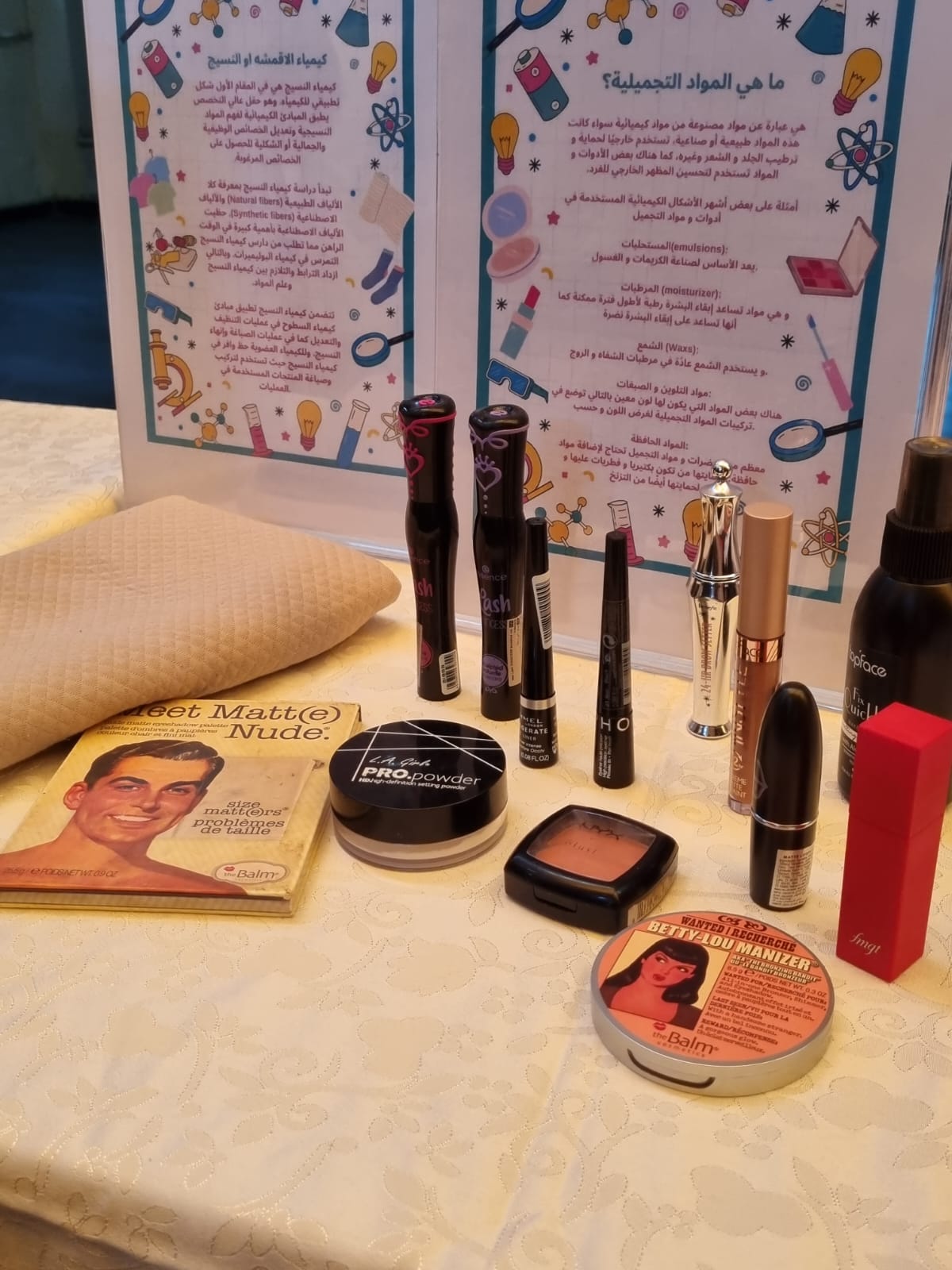 وقامت الطالبات بتوزيع عينات صغيرة من كل المنتجات وكتابة المكونات عليها للاستفادة.