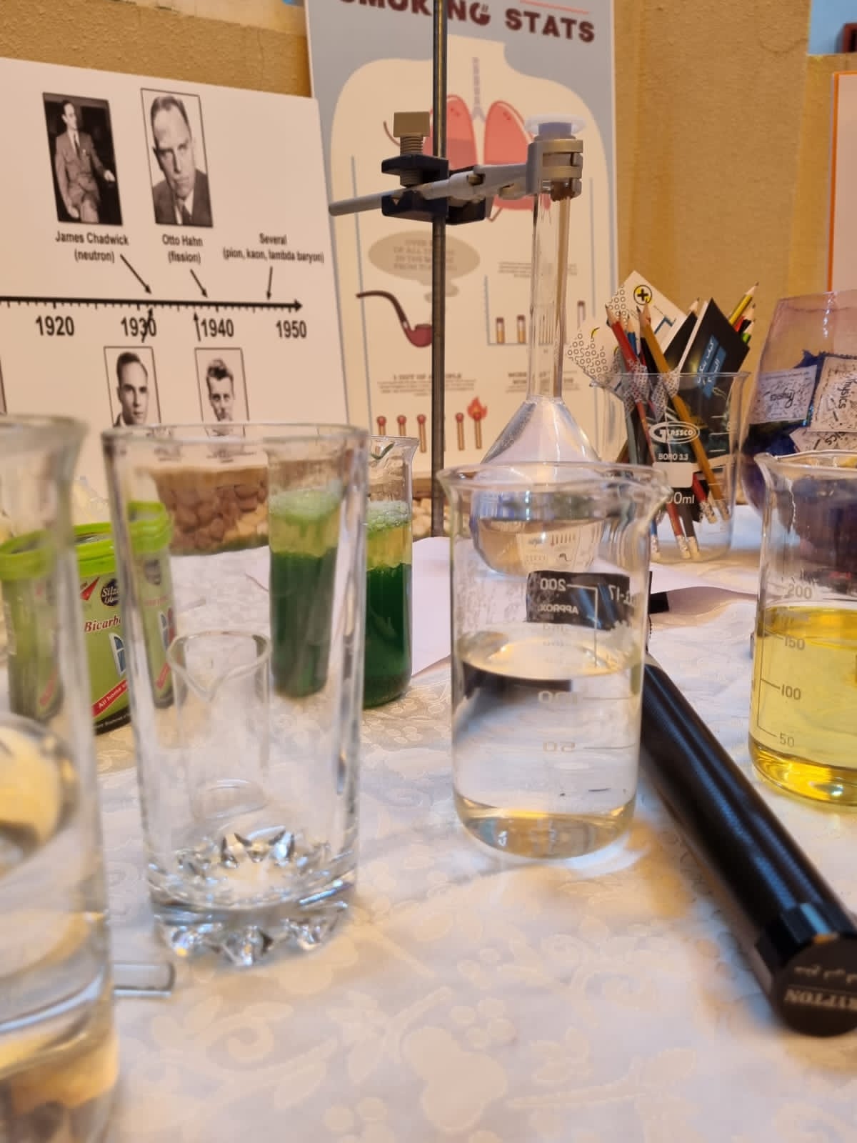 يعتبر علم الكيمياء من العلوم المهمة في حياتنا، حيث تدخل الكيمياء في معظم الأدوات والمنتجات التي يستخدمها الإنسان، فتجدها في الطعام والملابس والأسلحة والدهانات والأدوية وغيرها من الصناعات التي لا غنى عنها إطلاقًا ومن هذا المنطلق، أقيمت فعالية بعنوان (بحر الكيمياء) يوم الأربعاء الموافق:4/6/ 1444هـ بحضور عميدة كلية العلوم والدراسات الإنسانية بحوطة بني تميم د. حصة بنت سعود الهزاني ومنسوبات الكلية والطالبات، في تمام الساعة 9:30 صباحًا في ساحة الكلية.