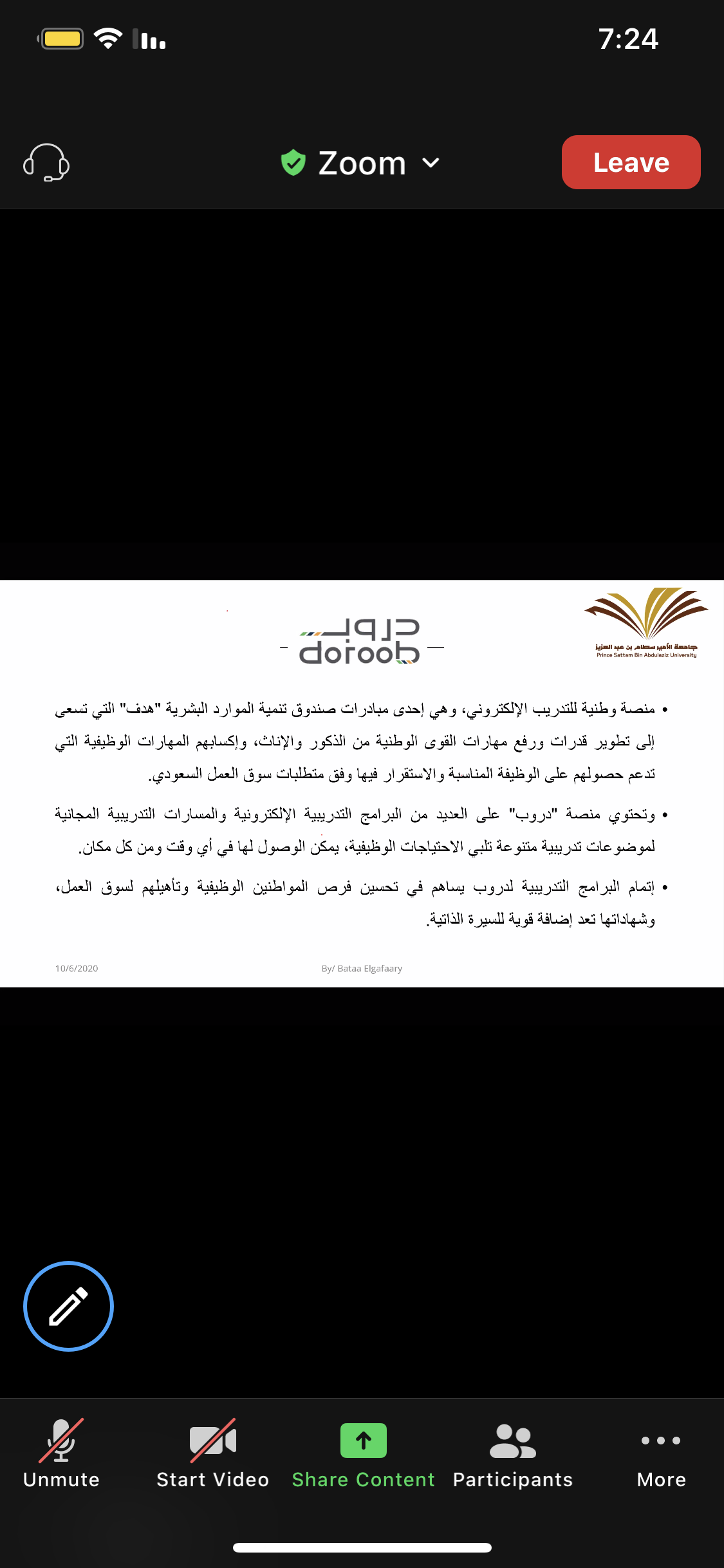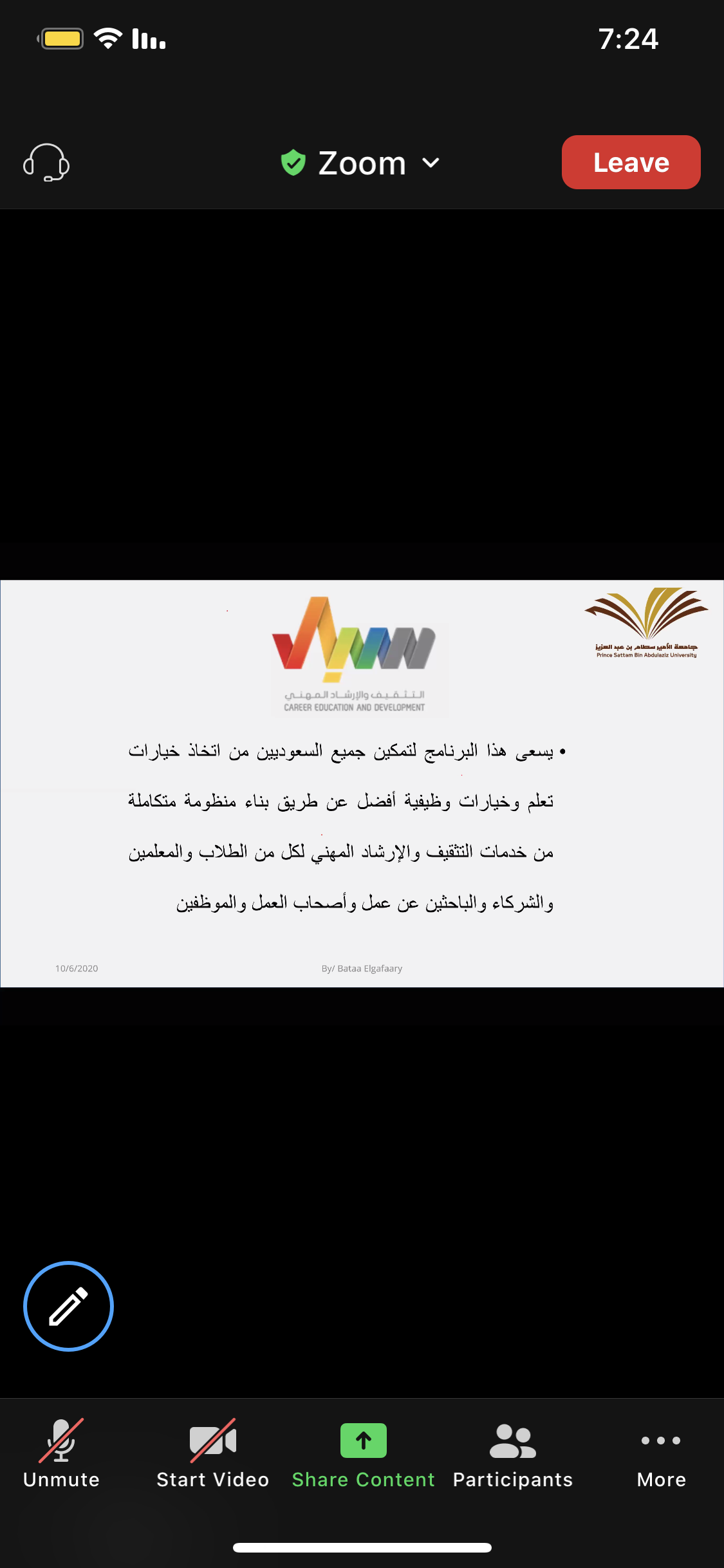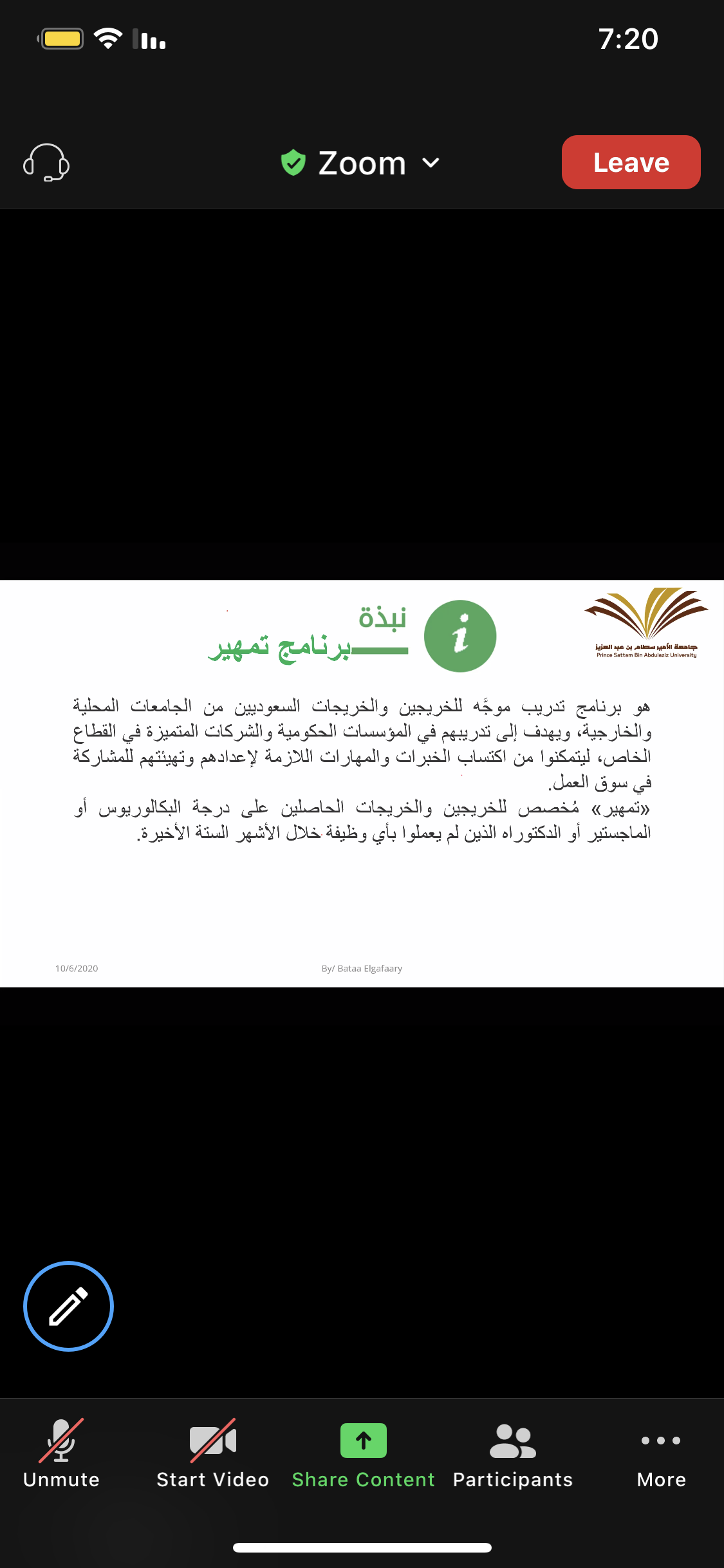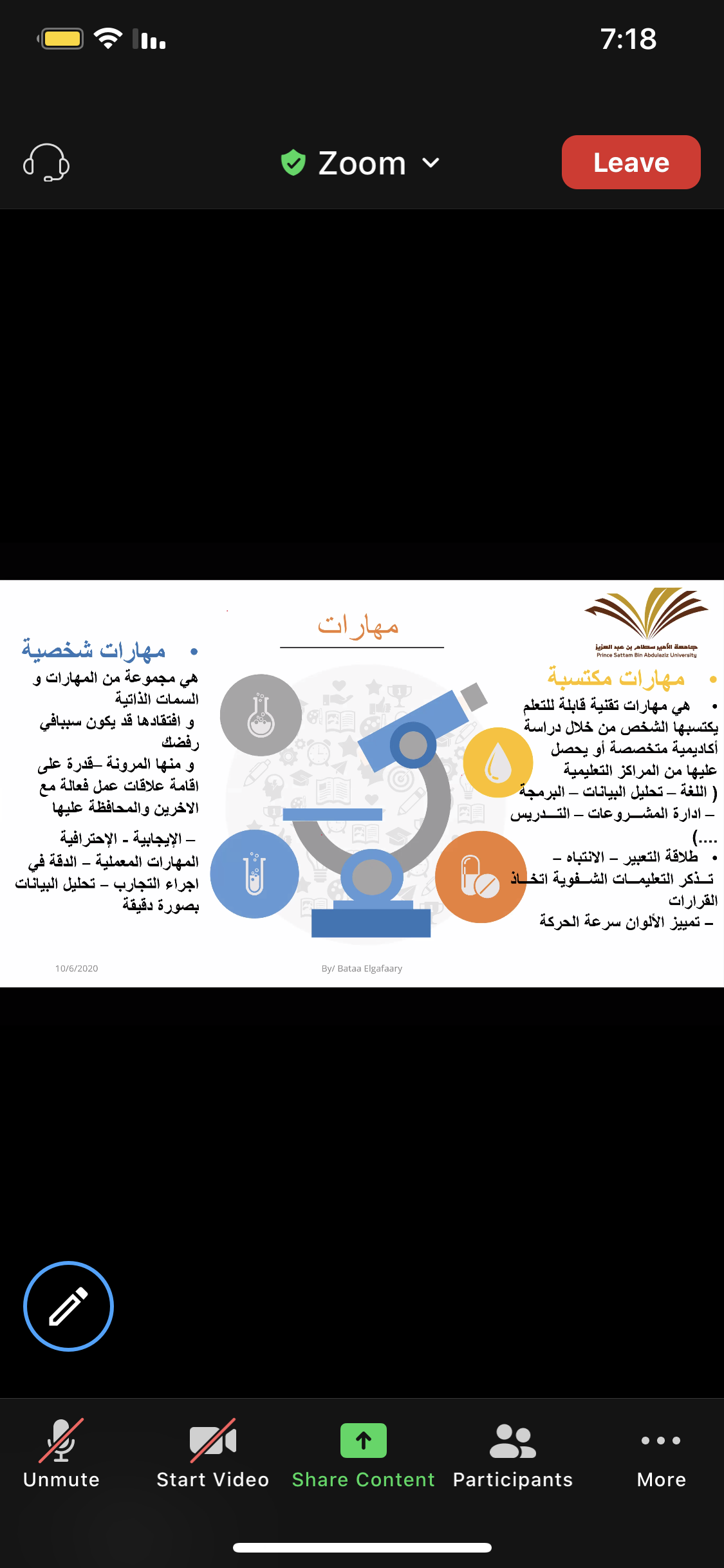 أقامت وحدة الخريجات ( الإرشاد المهني ) بالاشتراك مع قسم الكيمياء بكلية العلوم و الدراسات الإنسانية بحوطة بني تميم تحت قيادة عميدة الكلية المكرمة / د. حصة بنت سعود الهزاني. فعالية بعنوان " ماذا بعد التخرج؟" تقديم ا. باتعة عامر الجعفري محاضر بقسم الكيمياء، و ذلك في يوم الثلاثاء الموافق: 1442/2/19هـ تمام الساعة السابعة مساءً عبر برنامج Zoom. بحضور منسقة لجنة الإرشاد المهني بالكلية د. فاطمة التاج و عدد (49) طالبة من قسم الكيمياء، حيث بدأت الفعالية بتعريف الطالبات بالاستعدادات الواجب إتباعها استعداداً لحياة ما بعد التخرج و تحقيق حلم الحصول على الوظيفة المناسبة، و تم استعراض المسارات المهنية المتاحة لتخصص كيمياء. تلى ذلك توضيح للمهارات المطلوبة بشكل عام لسوق العمل و تقسيمها لمهارات مكتسبة و مهارات شخصية و توضيح كلا منهما، و مدى تأثير افتقاد الطالبات لأي من هذه المهارات أو على الفوز بالوظائف الملائمة، و ما هي القدرات الشخصية المطلوب توفرها للتميز في المهنة . ثم انتقل الحديث إلى استعراض لمبادرات صندوق تنمية الموارد البشرية متمثلة في (برنامج تمهير - منصة دروب - منصة سبل ) و دورها في اكساب الخريجات الخبرات والمهارات.