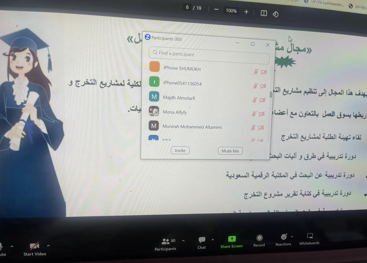كما وضحت رئيسة الوحدة نيابة عن منسقة لجنة تنمية المهارات د. نحا القحطاني الهدف من برنامج إحتراف ومنصة دروب وكيفية الاستفادة منها ودورها في مجال تنمية المهارات المهنية للخريجات والمتوقع تخرجهم.