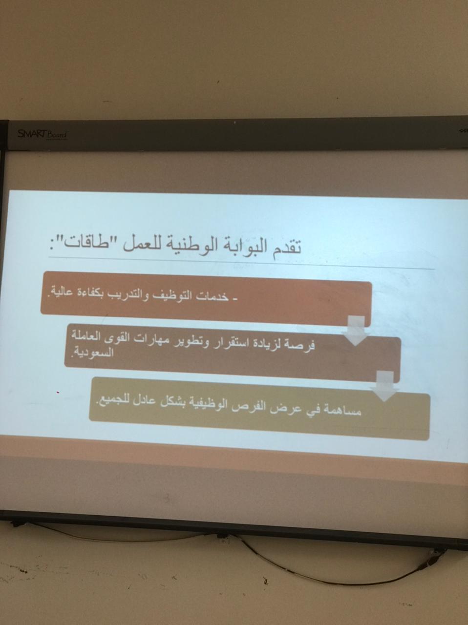هدف اللقاء إلى التعريف ببوابة العمل طاقات إحدى مبادرات صندوق تنمية الموارد البشرية "هدف" واستعراض خدمات التوظيف والتدريب والبرامج التي تقدمها البوابة لزيادة استقرار وتطوير القوى العاملة، كما هدف اللقاء إلى مساعدة الخريجات والمتوقع تخرجهن على التسجيل في البوابة.