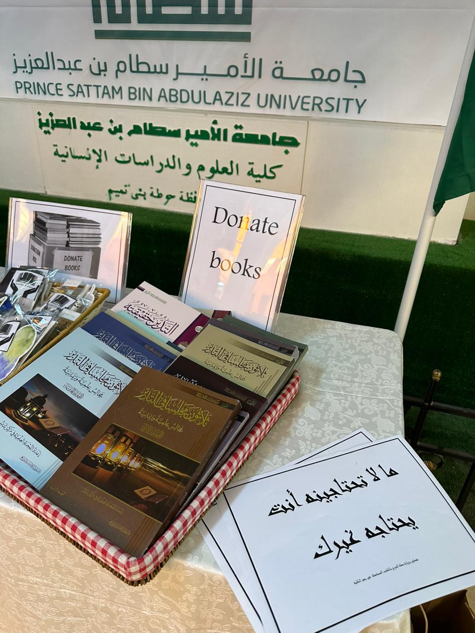 تحت رعاية سعادة عميدة كلية العلوم والدراسات الإنسانية بحوطة بني تميم د / حصة بنت سعود الهزاني، أقامت وحدة العمل الطلابي ممثلة بقسم اللغة الإنجليزية مبادرة جمع الكتب المستعملة تحت عنوان:(امنح كتابك القديم حياة جديدة)، وذلك في يوم الخميس 1445/3/27هـ الساعة 9:30 صباحًا في بهو الكلية.