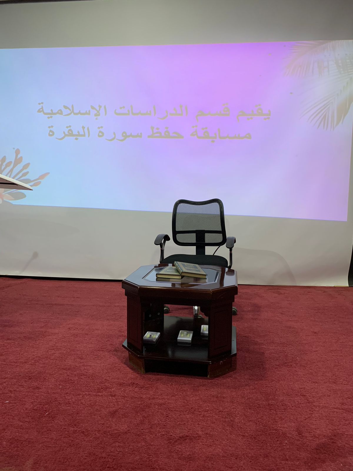 تعهَد الله -تعالى- بحِفظ القرآن الكريم من التحريف والتبديل؛ لقَوله -تعالى-: (إِنّا نَحنُ نَزَّلنَا الذِّكرَ وَإِنّا لَهُ لَحافِظونَ)، ويسَّرَ تلاوته وحِفظه لأمّة الإسلام، حيث أقام قسم الدراسات الإسلامية تحت رعاية عميدة كلية العلوم والدراسات الإنسانية الدكتورة حصة بنت سعود الهزاني (مسابقة حفظ سورة البقرة ) وذلك في يوم الثلاثاء الموافق: 26/ 8/ 1443هـ في تمام الساعة (9:30) في مسرح الكلية، بإشراف وكيلة قسم الدراسات الإسلامية الدكتورة/ فاطمة التمامي، حيث كان عدد المتسابقات 12 طالبة وتم ترشيح (5) طالبات من قبل لجنة التحكيم الأولية وهن: الأستاذة منال الدحيم، والأستاذة منيرة السيف، والأستاذة مريم آل طالب.