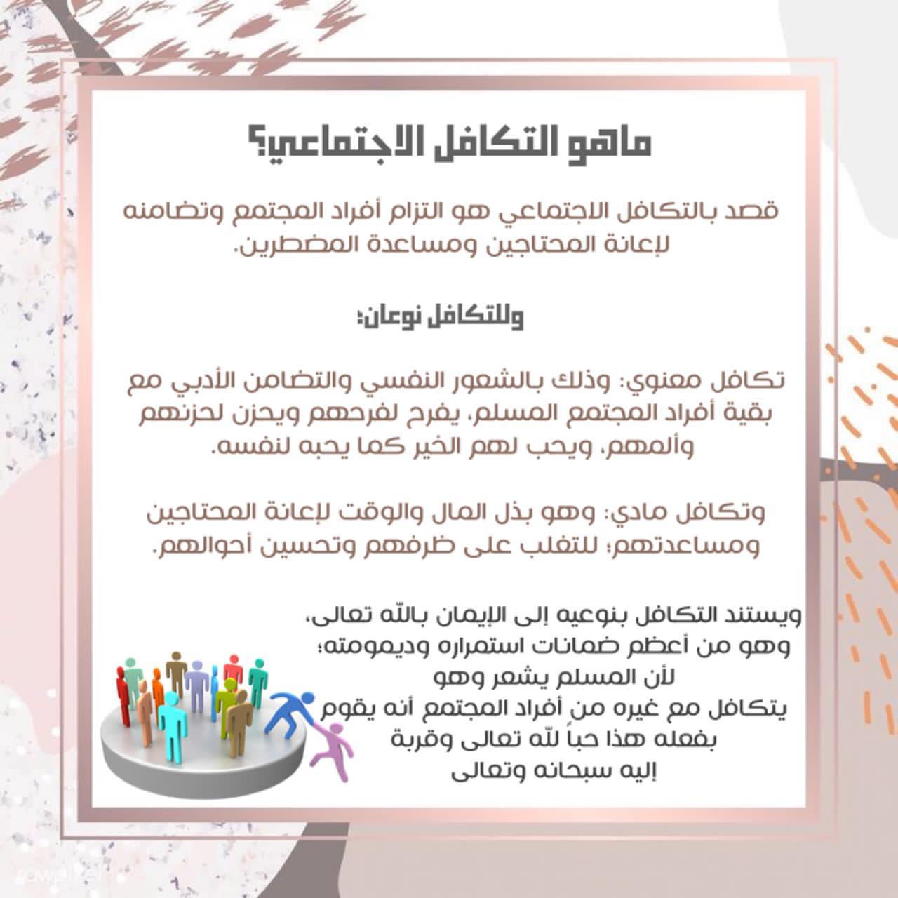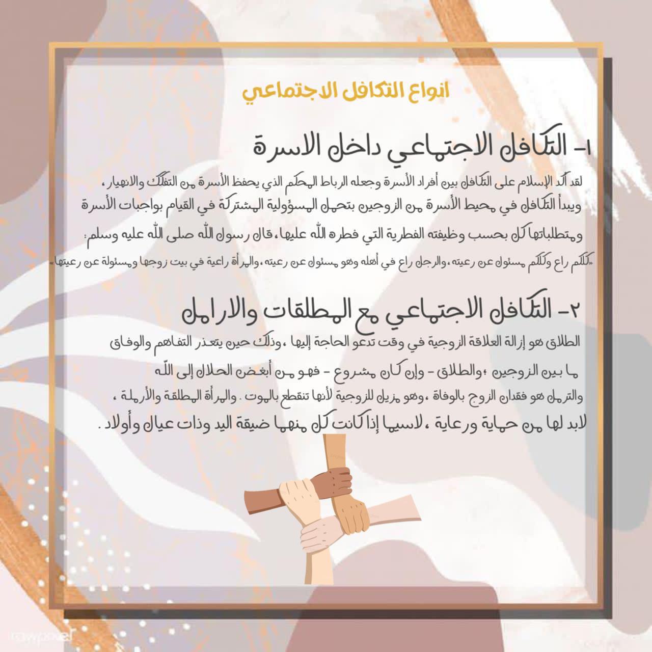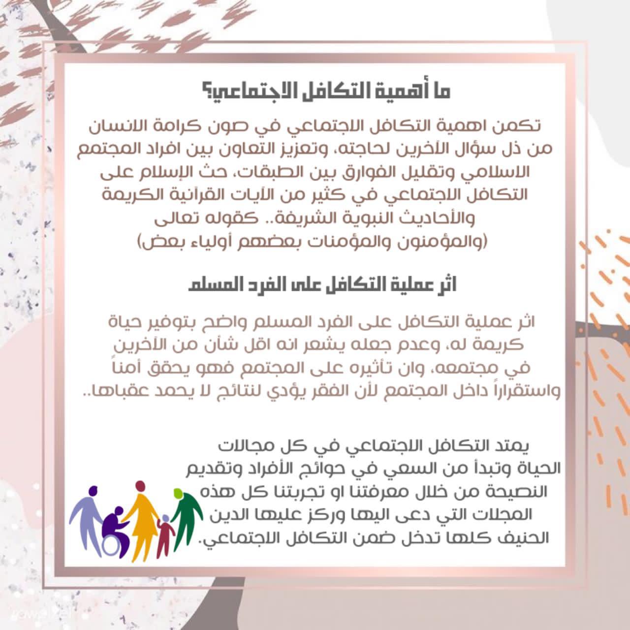 إن التزام أفراد المجتمع وتضامنهم لإعانة المحتاجين ومساعدة المضطرين يعتبر من الأسس والأركان التي يقوم عليها بنيان المجتمع الإسلامي، بناءً على ذلك قدم قسم الدراسات الإسلامية (الخدمة المجتمعية)بكلية العلوم والدراسات الإنسانية بحوطة بني تميم بالتعاون مع جمعية الدعوة والإرشاد بحوطة بني تميم ندوة بعنوان (التكافل الاجتماعي في الإسلام) تحت رعاية عميدة الكلية د/حصة بنت سعود الهزاني، في يوم الخميس الموافق: 11/ 4 /1442هـ. بدأت الندوة بالترحيب بالحاضرات، ثم ألقت عدد من الطالبات كلمة عن التكافل الاجتماعي من المنظور الإسلامي، حيث تناولن تعريف التكافل الاجتماعي و دور الدولة في تحقيق التكافل في المجتمع، ثم تحدثت أ. فوزية مديرة الدعوة والارشاد وتوعية الجاليات واستمتع الطالبات بحديثها الشيق في هذا الموضوع ومداخلتها المفيدة ثم تحدثت د/فاطمة التاج مصطفي موضحة الهدف من الندوة وحث الناس على التفاعل فيما بينهم.