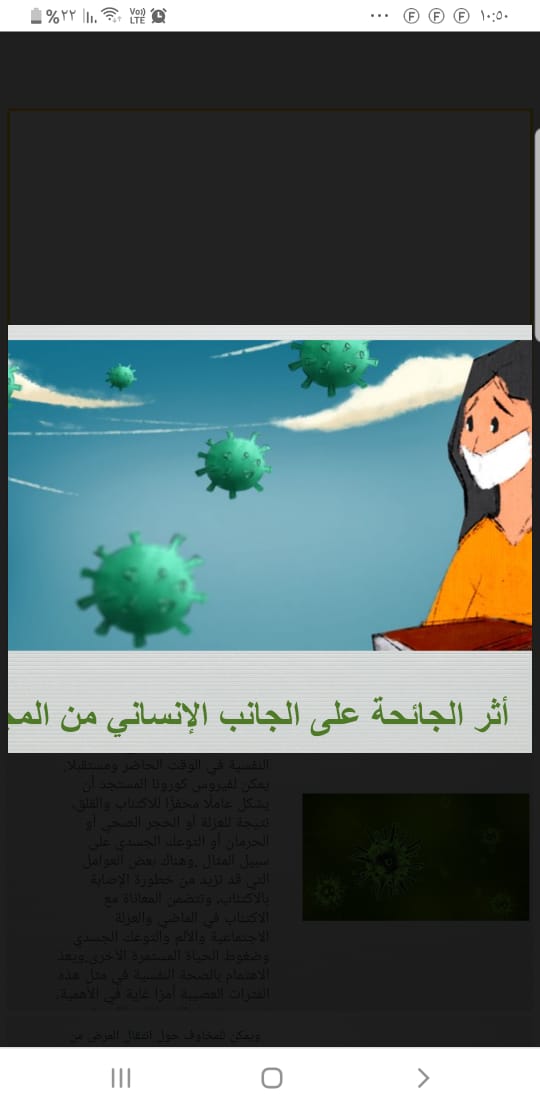 أقامت وحدة التدريب والخدمة المجتمعية وشعبة العمل التطوعي بقيادة عميدة كلية العلوم والدراسات الإنسانية د. حصة بنت سعود الهزاني. ندوة بعنوان (أثر الجائحة على الجانب الإنساني من المجتمعcovid-19) في يوم الثلاثاء الموافق : 1442/2/12هـ. في الساعة 7 مساءً على برنامج zoom. قدمت الطالبات البرنامج مصحوب بعرض بوربوينت وأفلام وثائقية. تناولن فيه الإجراءات اللازمة للحفاظ على الصحة النفسية للمجتمعات المتأثرة بالفيروس، وأثر المخاوف من انتقال الفيروس على التماسك الاجتماعي، والعوامل التي تزيد من خطورة الإصابة بالإكتئاب، كما تناولن الامور التي تساعد على تحسين حال الصحة النفسية. وقد صاحب البرنامج حلقة نقاش بين الحضور حول موضوع الندوة بإشراف د. أميرة صالح ود. عبير عبد الحكيم بحضور عدد من الطالبات.