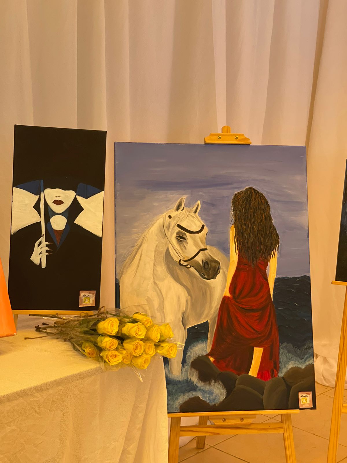 وقد افتتح الركن بحضور سعادة عميدة الكلية ووكيلة الكلية للشؤون الأكاديمية ورئيسة قسم الكيمياء، وعدد من منسوبات وطالبات الكلية ووجهت سعادة العميدة كلمات الشكر والتقدير للطالبة على الجهود المبذولة في سبيل الارتقاء بمستوى الذائقة الفنية وحثها على الاستمرار في مجال الفن التشكيلي، كما نال العرض على استحسان الزائرات.