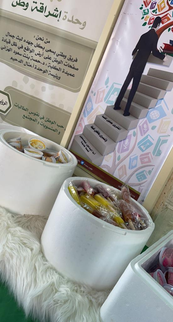 مبادرة المواطن للوطن تستحق التضحيات كيف لا وهي لبنات الوطن ولبناته تعاد اللحظات التي تجمعنا بطالبات جامعة الأمير سطام في جو يعلوه الرهبة وتشتد فيه اللحظة جو الاختبارات تحت رعاية عميدة كلية العلوم والدراسات الإنسانية بحوطة بني تميم د. حصة بنت سعود الهزاني تسعد وحدة إشراقة وطن بإشراف ا. منال الدحيم والفريق التابع لها بإقامة ركن (فنجان قهوة وقطعة ثلجة) صباحات الوطن التي تفخر بابناءها وبناتها وتذلل الصعاب من أجل الوصول للقمم صباح يوم الأحد الموافق: ١٤٤٣/١٠/٢٨هـ انطلاقة الاختبارات فكان هذا الركن يحكي ويصور مدى مشاعرنا ووقفتنا مع طالباتنا الغاليات وادخال البهجة والسرور لينطلق الركن الأول بفنجان قهوة وامدادات عون لمن نسيت بأقلام مجهزه وكمامات مغلفة ومياه مبردة، والركن الثاني وهو مثلجات فرائحيه وقد ازداد السرور سرورًا بابتهاج الطالبات ودعواتهن ليكون صداه بقلوبنا لاهجا بالدعاء لهن بالتسديد والتوفيق أدام الله أمننا ووطننا.