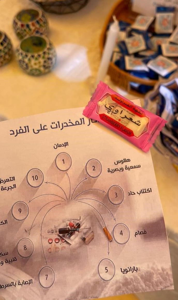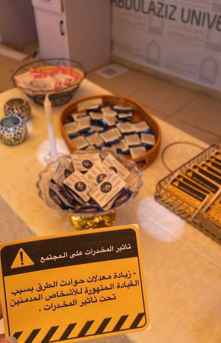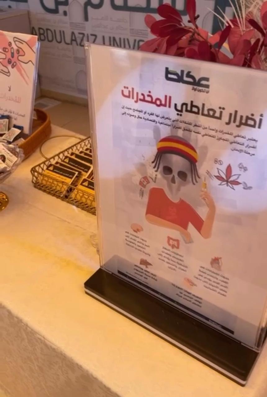 انطلاقًا من ضرورة التوعية بمدى تأثير المخدرات والمسكرات على المجتمع وبرعاية سعادة عميدة كلية العلوم والدراسات الإنسانية بحوطة بني تميم د / حصة بنت سعود الهزاني. أقامت لجنة التوعية بمكافحة التدخين والمخدرات ركنًا توعويًا يلخص ويجسد الآثار السلبية الوخيمة التي تتركها المخدرات في المجتمع، وذلك في يوم الخميس ٤ /٤ / ١٤٤٥هـ، الساعة ٩:٣٠ صباحًا في ساحة الكلية، بإشراف ا. فاطمة الجدعان.