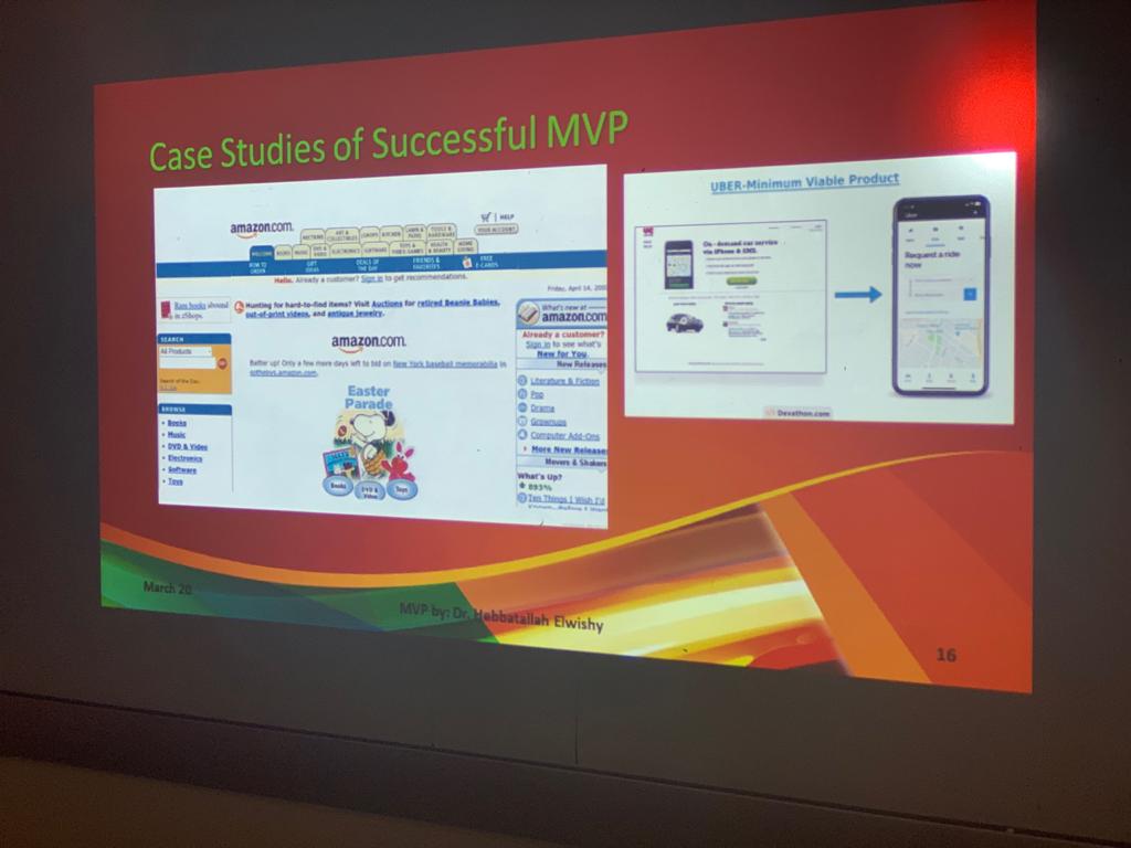 تزامناً مع انطلاق فعاليات الملتقى العلمي الطلابي و في إطار الورش التحضيرية لمحور تنمية و تنويع الاقتصاد ( مشاريع ريادة الأعمال) تحت قيادة عميدة كلية العلوم و الدراسات الإنسانية بحوطة بني تميم سعادة الفاضلة د/ حصة بنت سعود الهزاني. قدمت د/ هبة الله أحمد الويشي الأستاذ المساعد و المشرفة على قسم نظم المعلومات ورشة عمل بعنوان" إعداد النماذج الأولية المبسطة ((MVP( (Minimum Viable Product. وذلك في يوم الأثنين الموافق :1441/7/7هـ. بقاعة الاجتماعات في تمام الساعة التاسعة و النصف صباحاً و بحضور عدد من الطالبات و الخريجات و بعض من عضوات هيئة التدريس بالكلية. بدأت الورشة بالتعريف بالنموذج الأولي المبسط للمنتج ممثلاً في منتج يحمل الحد الأدنى من المميزات قابل للاستخدام الحالي و التطوير المستقبلي يتم بناؤه بأقل تكلفة ممكنة تفادياً لبناء منتج كامل المميزات قد لا يحالفه النجاح. و قد أوضحت فلسفة بناء و بيع المنتج للعملاء من خلال عملية متكررة لتوليد الأفكار تشمل بناء النموذج الأولي، و عرضه على العملاء، جمع البيانات من خلال التغذية العكسية لآراء العملاء و تحليلها ثم التعلم لتطوير النموذج و ذلك في أقل دورة زمنية تتكرر إلى أن يحقق المنتج قبولاً لدى شريحة واسعة من العملاء او حتى يثبت فشله. كما أشارت إلى خصائص المنتج الأولي المبسط الجيد و مميزاته. كما ألقت الضوء على أهم التطبيقات الناجحة التي اعتمدت في مرحلة إطلاقها الأولي على النموذج المبسط مثل Facebook, Dropbox, Amazon and UBER، كما عرضت عدد من البرامج المستخدمة لبناء النماذج الأولية المبسطة مثل Wireframe.cc, FluidUI, Moqups, Invision Studio, Sketch and Balsamiq . و قد اختتمت الورشة بتعريف الطالبات بقطاعات محور مشاريع ريادة الأعمال و شروط المشاركة و شرح النماذج و توزيع استمارات المشاركة على الطالبات اللاتي أبدين حماس شديد للمشاركة الفعالة بالملتقى العلمي مع أطيب أمنياتي بالتوفيق.