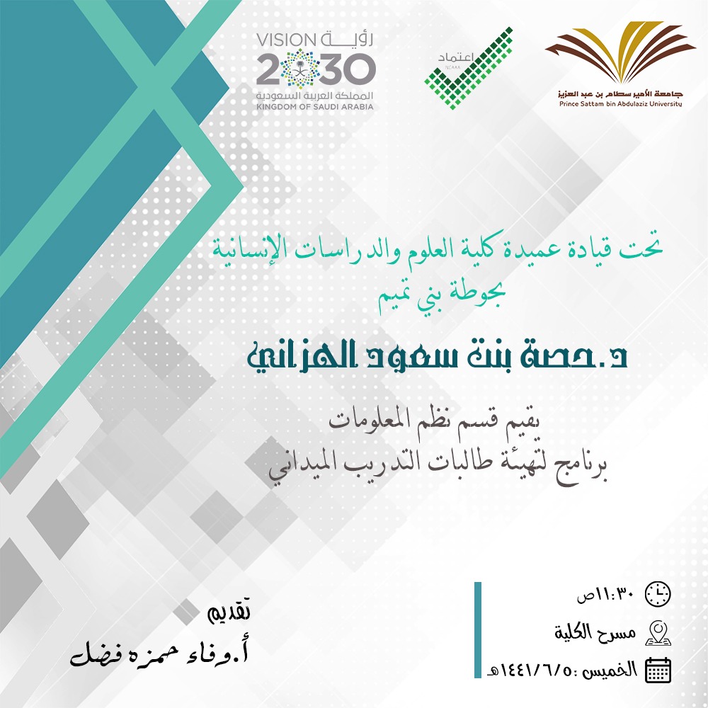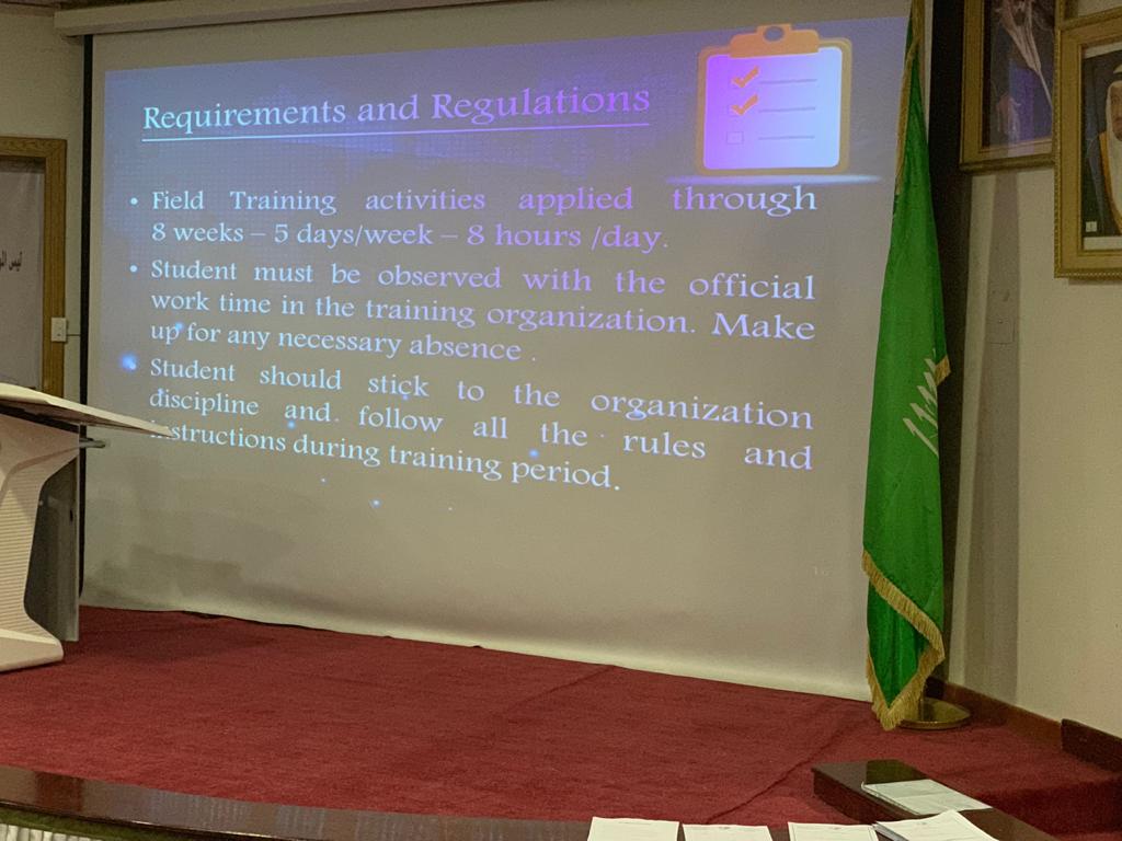 أقامت كلية العلوم والدراسات الإنسانية بحوطة بني تميم خلال هذا الأسبوع برامج منوعه لتهيئة طالبات التربية الميدانية لأقسام الكلية، بغرض تعريف الطالبات بالتدريب الميداني وبيان الاجراءات التنظيمية لهذا التدريب، واختتمت هذه البرامج بتقديم قسم نظم المعلومات ورشة عمل بعنوان "تهيئة الطالبات في التدريب الميداني" يوم الخميس الموافق: ١٤٤١/٦/٥هـ في مسرح الكلية، تحت قيادة عميدة الكلية الدكتورة حصة بنت سعود الهزاني. قدمت البرنامج أ. وفاء حمزة منسق التدريب الميداني بالقسم وتحدثت فيه عن أهداف التدريب الميداني والتي تركز علي استفادة الطالبات من التدريب وخاصة في مجال تصميم قواعد البيانات وتصميم الأنظمة وتحليلها. وأيضا تهيئة الطالبات للوظيفة بعد التخرج وقدرتهن على اداء المهام بطريقة احترافية. كما تم شرح اللوائح والقواعد التي يفترض أن تلتزم بها الطالبات، وتم توضيح المتطلبات المطلوبة من الطالبات استيفاءها للالتحاق بجهة التدريب. وعرضت النقاط التي يجب أن يحتويها التقرير النهائي المطلوب تنفيذه من قِبل الطالبة بعد انتهاء فترة التدريب. كما تم توضيح آلية تقسيم الدرجات وكيفية التقييم في التدريب الميداني، كما تم توزيع نماذج يجب تعبئتها من قِبل الطالبة ومن جهة التدريب. وفي ختام الورشة تم فتح باب الأسئلة للطالبات وكان التفاعل كبير بين الطالبات.