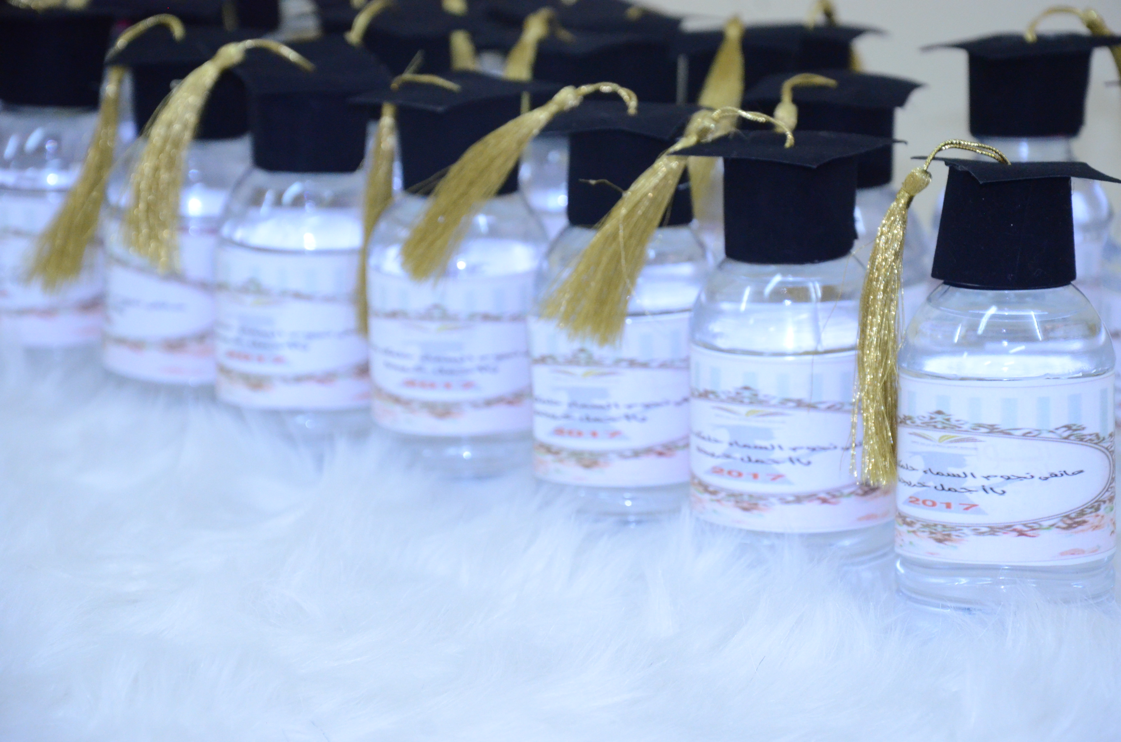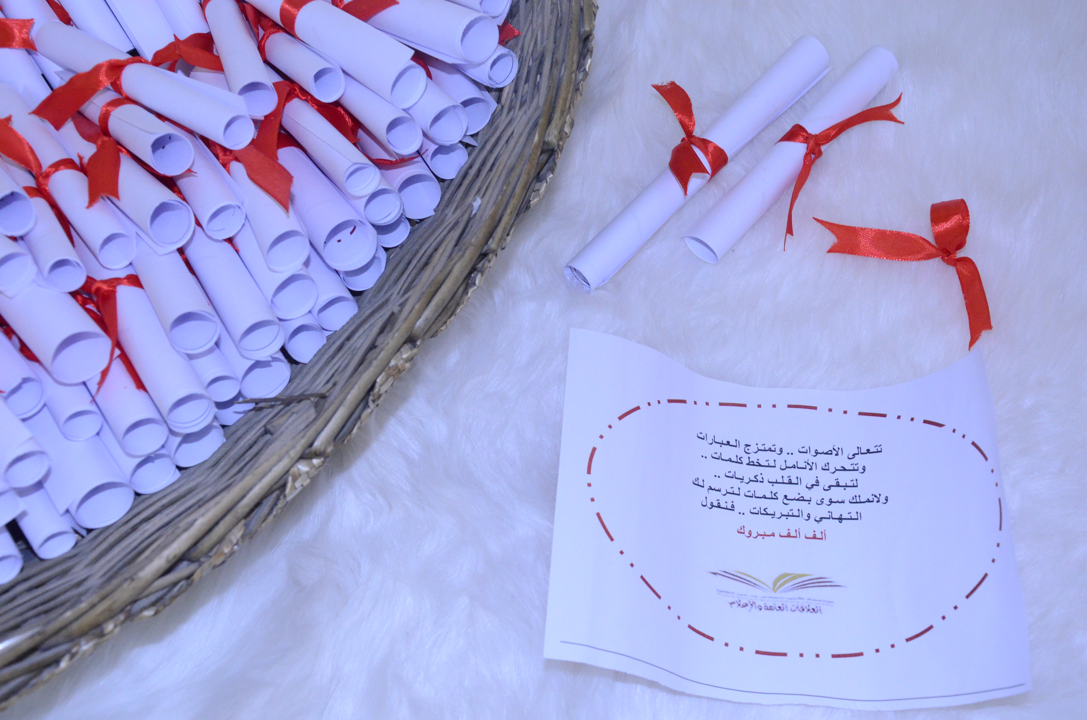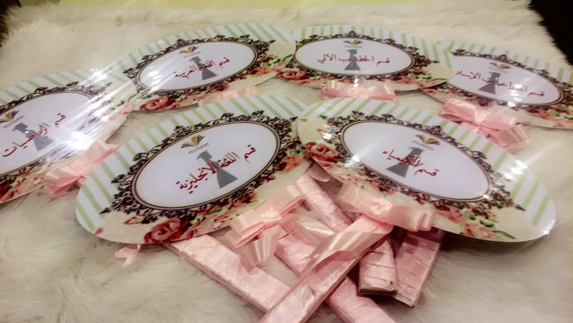 بعدها أعلنت مساعدة مشرف قسم العلاقات العامة والإعلام الأستاذة منيره الرشود انطلاقة المسيرة التي تتابعت فيها الخريجات نحو المسرح واجتمعن فيه ملوحات بقبعات التخرج .