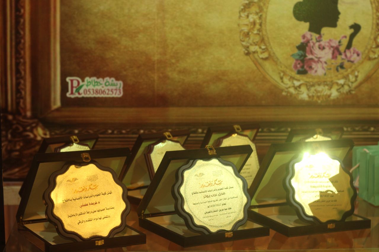 وفي نهاية الاحتفال تم تكريم الطالبات المتفوقات والحاصلات على مراتب الشرف الأولى والثانية وتقديم الهدايا لهن .
