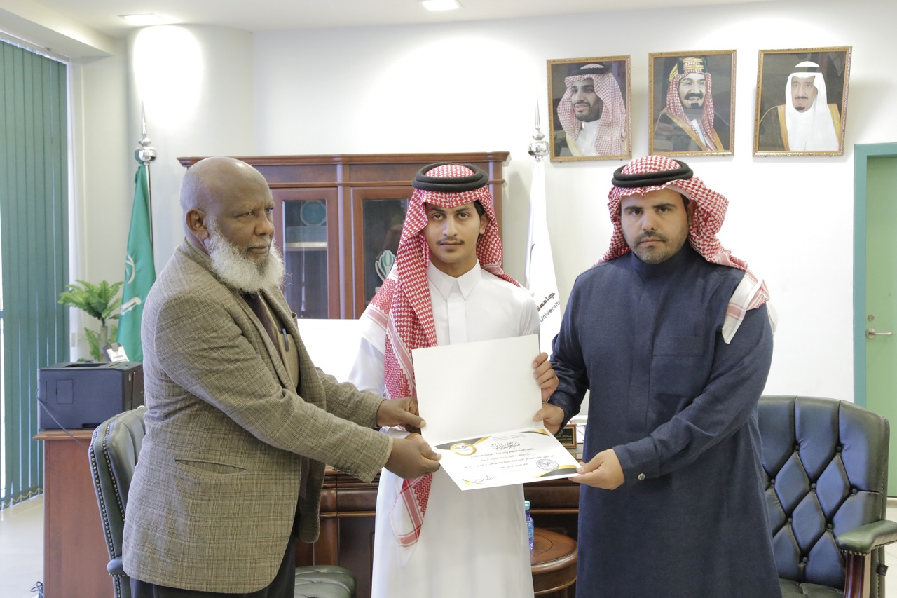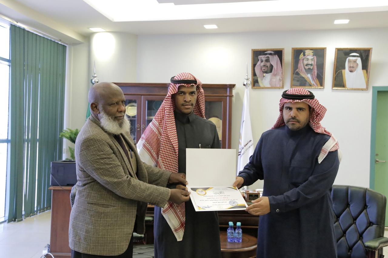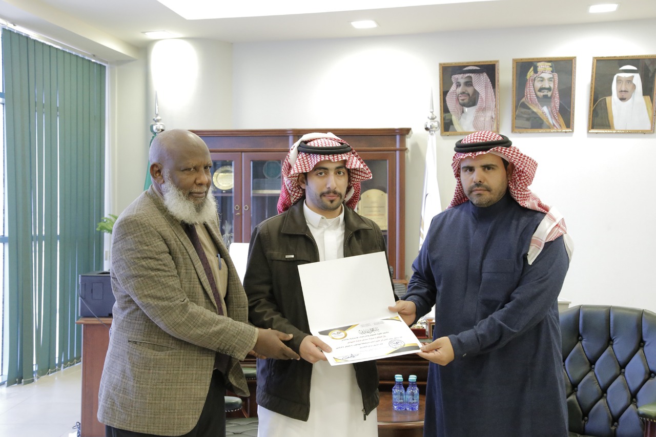 وفي ختام التكريم تقدم سعادة العميد بالشكر والتقدير للطلاب على ما قاموا به خلال مشاركتهم في مختلف محاور المسابقة على مستوى الكلية وكذلك تمثيلهم على مستوى الجامعة داعيًا الله لهم بالمزيد من التفوق والإبداع.