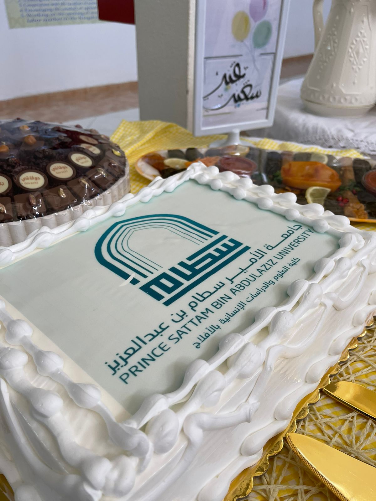نظمت كلية العلوم والدراسات الإنسانية بجامعة الأمير سطام بن عبدالعزيز بالأفلاج اليوم حفل معايدة لمنسوبيها بشطري الطلاب والطالبات، وذلك بحضور سعادة عميد الكلية الدكتور/ محمد بن هذال الدوسري بشطر الطلاب، و سعادة وكيلة الكلية د. مها سليمان العنزي بشطر الطالبات. ووسط أجواءٍ مبهجة، تبادل أعضاء هيئة التدريس والموظفين التهاني والتبريكات بمناسبة عيد الفطر المبارك.