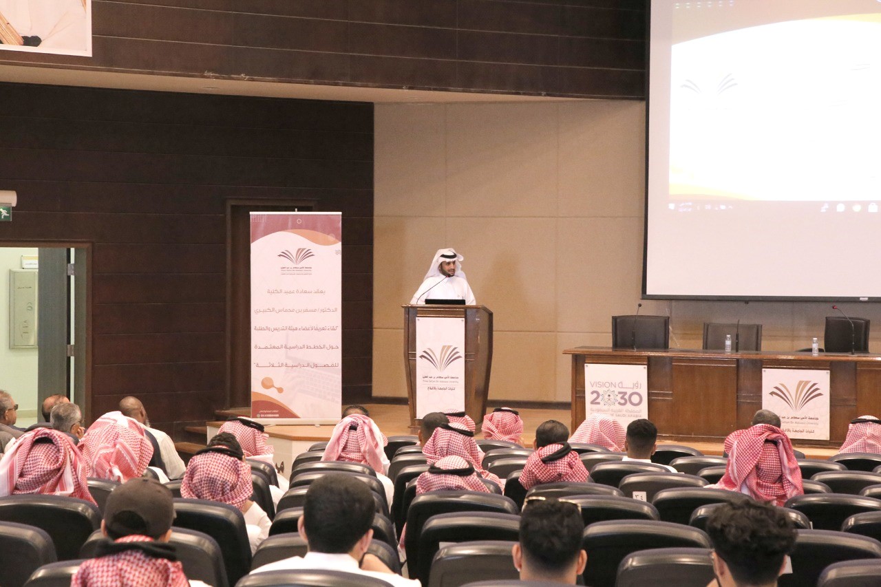 عقدت كلية العلوم والدراسات الإنسانية بالأفلاج لقاءً لأعضاء هيئة التدريس والطلاب، وذلك يوم الإثنين 02/02/ 1444هـ، في مسرح الكلية للتعريف بنظام الفصول الثلاثة، ومتابعة آلية تطبيق الخطط الدراسية المعتمدة. وافتتح سعادة عميد الكلية الدكتور مسفر بن محماس الكبيري اللقاء بالترحيب بأعضاء هيئة التدريس والطلاب منوهاً إلى التعريف بكل ما هو مستحدث في مجال البيئة التعليمية والأكاديمية، ومنها تحديث الخطط الدراسية، وتذليل العقبات، وتبادل الرؤى والأفكار حول التحول إلى تطبيق الفصول الدراسية الجديدة والتي كانت جامعة الأمير سطام بن عبدالعزيز سباقة في التهيئة لهذا التحول، من خلال عقد اللقاءات وورش العمل واللجان لتيسير ذلك التحول بما يعود بالنفع والتيسير على الطللاب ومستقبلهم، من خلال تحديث الخطط وزيادة ساعات الاتصال بما يساعد على الاستجابة لمتطلبات سوق العمل وبما ينعكس على كفاءة وسمعة الجامعة وخريجيها.