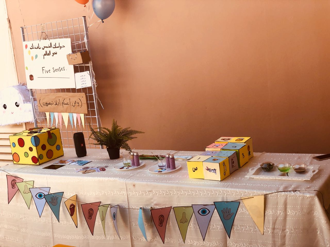كما أبدعن الطالبات ركن حواسك الخمس نافذتك نحو العالم ويهدف إلى التفكير بإستخدام الحواس وقياس إدراك الطفل لها والتأثر بها، كما عرض ركن وقفة تأمل في البحار وكائنات البحار وتعلمها بالإنجليزية تضمن ألعاب مصممة لهذا الغرض،وركن العالم الإفتراضي يصف عذوبة البحر بشكل مبسط ومحبب للطفل، ومنها ركن العبادة الصامتة ويهدف إلى إستخدام التقنية المناسبة للطفل ومعايشته الفكرة بالتأمل