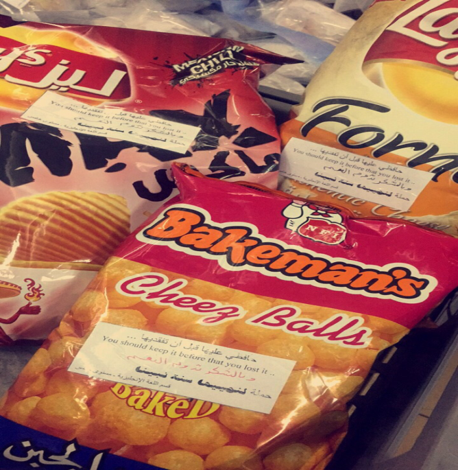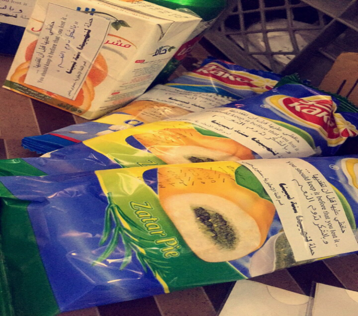وفي اطار تفعيل الحملة تمّ وضع بعض الملصقات على الأطعمة المباعة في الكافتيريا.. وعمل بعض التوزيعات لأعضاء هيئة التدريس.