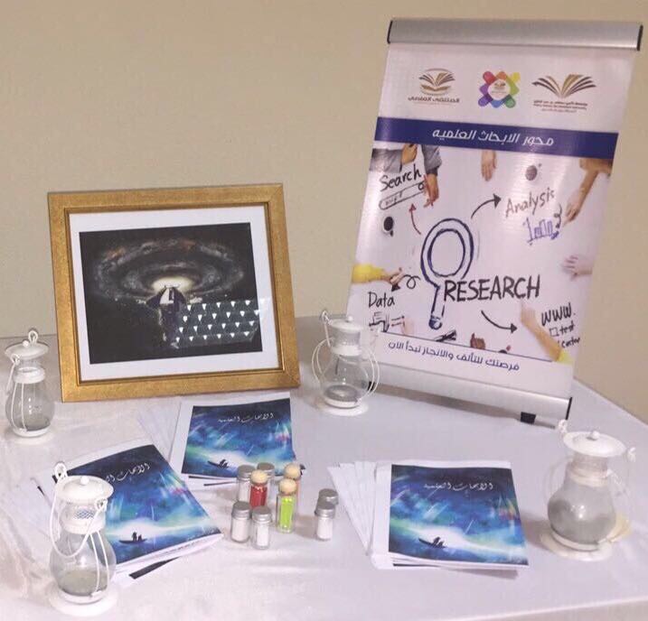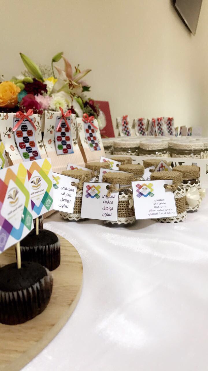 وفي الأخير تم عرض فيديو تعريفي وافتتاح معرض تعريفي للملتقى من إعداد طالبات المجالس الطلابي حيث تم توزيع منشورات تعريفة بالملتقى وبكل محور من الملتقى و الاجابة عن استفسارات الطالبات وتوضيح طرق المشاركة ونشر مواقع التواصل وتوضيح آلية التسجيل الإلكتروني لحصر المشاركات وقد تلقت اللجنة عدد كبير من الرغبات للتسجيل.
