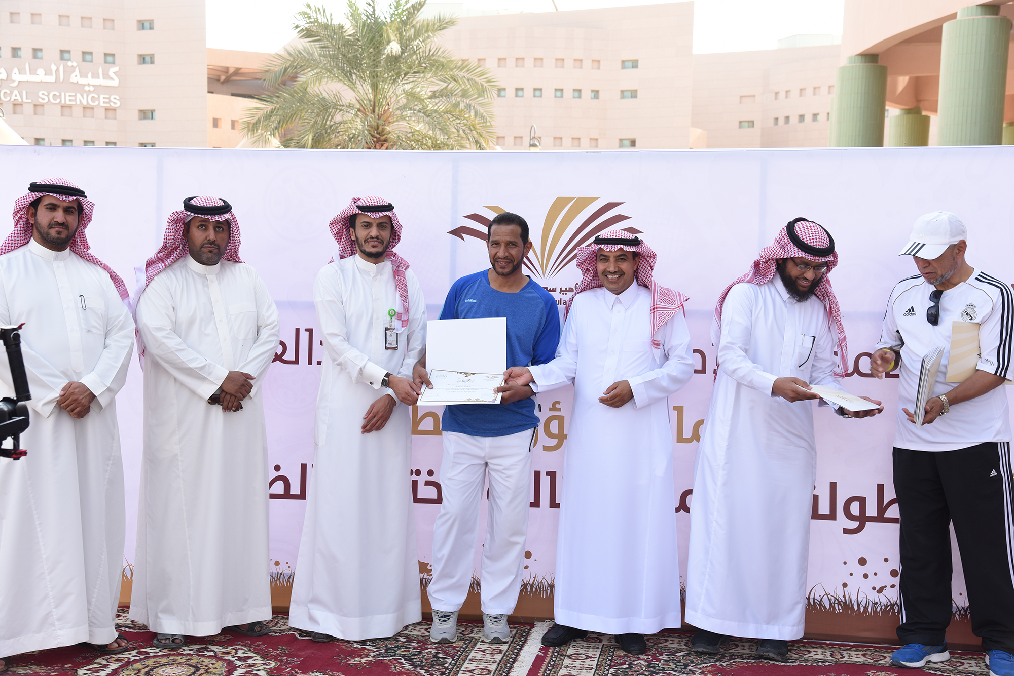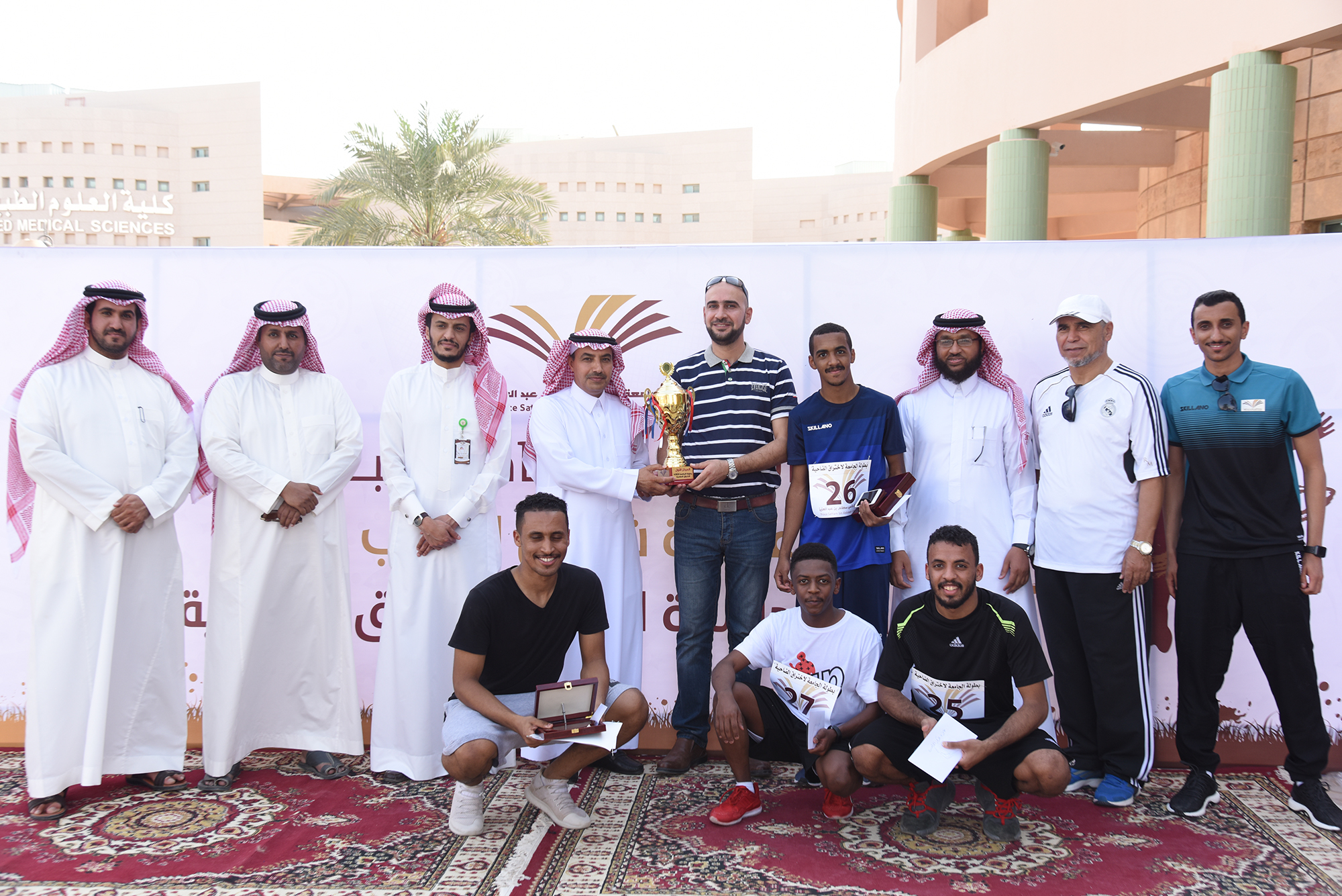حققت كلية العلوم والدراسات الإنسانية بالخرج المركز الأول في بطولة الجامعة الثالثة لاختراق الضاحية التي نظمتها عمادة شؤون الطلاب اليوم الثلاثاء 14 /2/ 1440 هـ وبمشاركة عشرة كليات داخل المدينة الجامعية بمحافظة الخرج , حيث أنطلق السباق الممتد من أمام المدخل الرئيس لكلية الطب وأخذ جولة كاملة حول محيط المدينة الجامعية من الخارج.